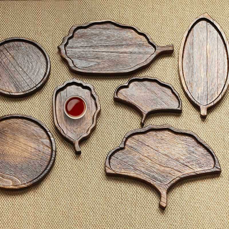 일본식 마른 담그는 테이블 티 트레이 잎 모양의 나무 트레이 단단한 나무 간식 간식 과일 트레이 창조적 인 찻집 가정용 나무 트레이