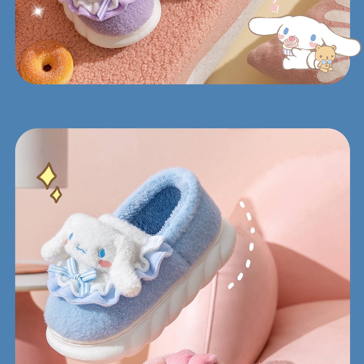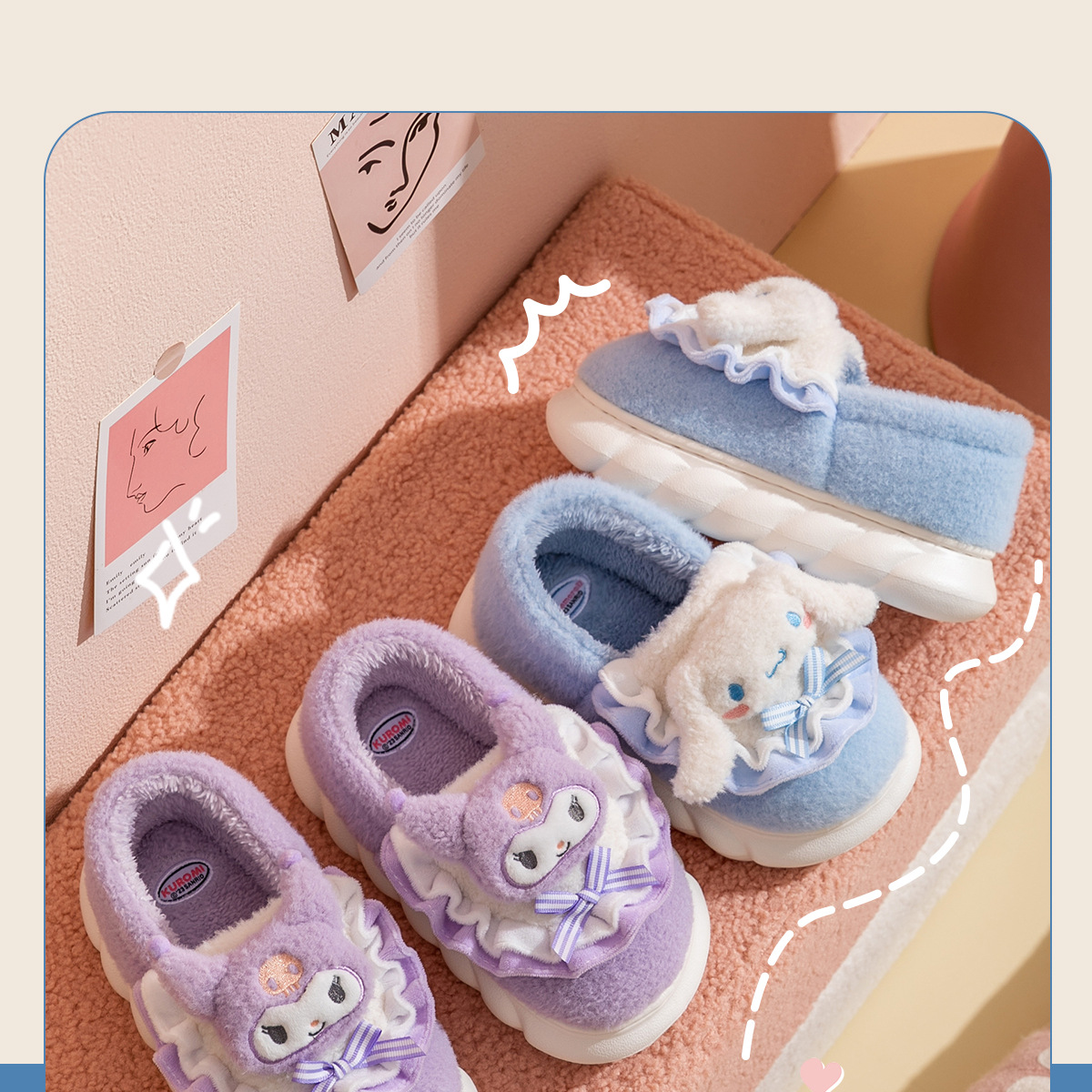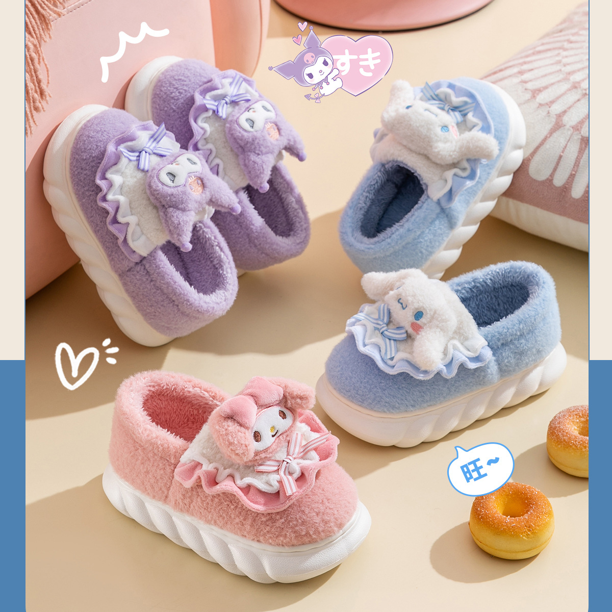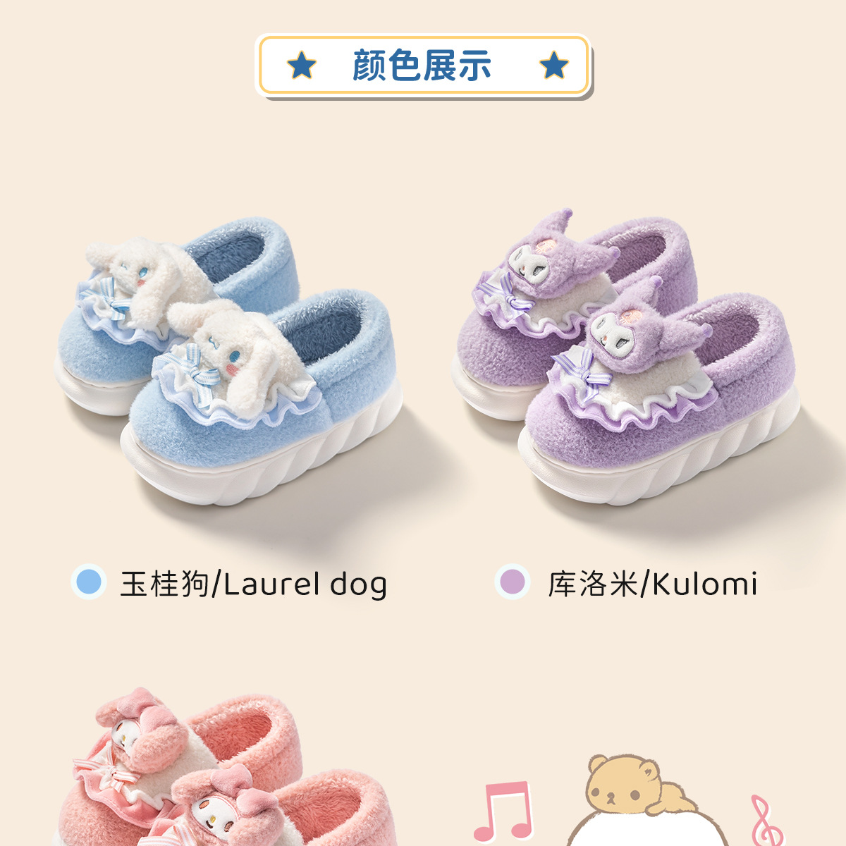 Lidani Sanrio Yugui 개 만화 어린이 면화 신발 겨울 착용 따뜻하고 푹신한 양모 슬리퍼 미끄럼 방지 아기스토어 가기