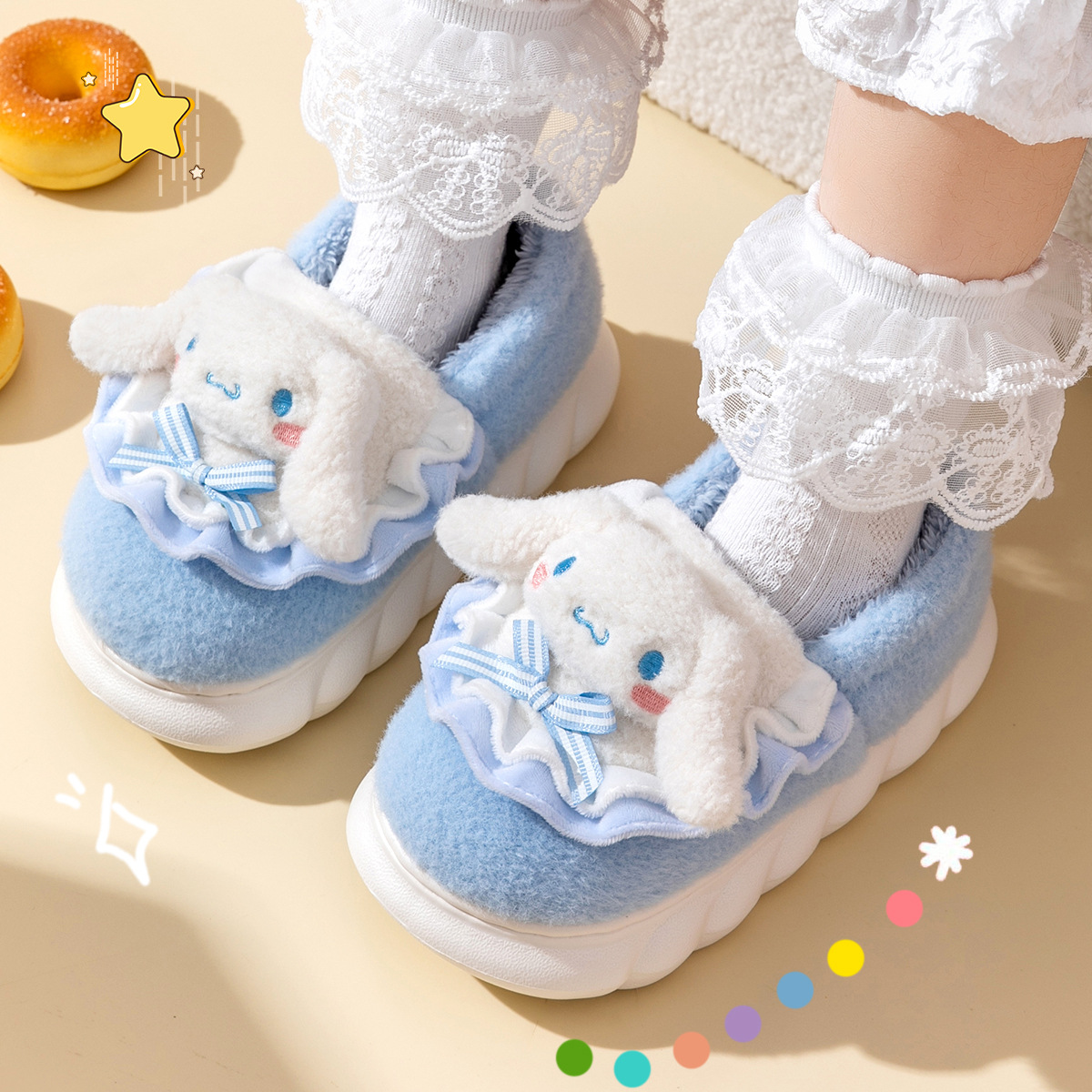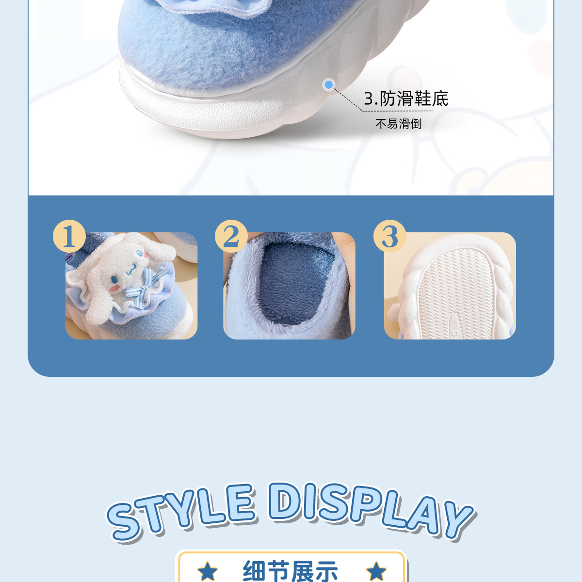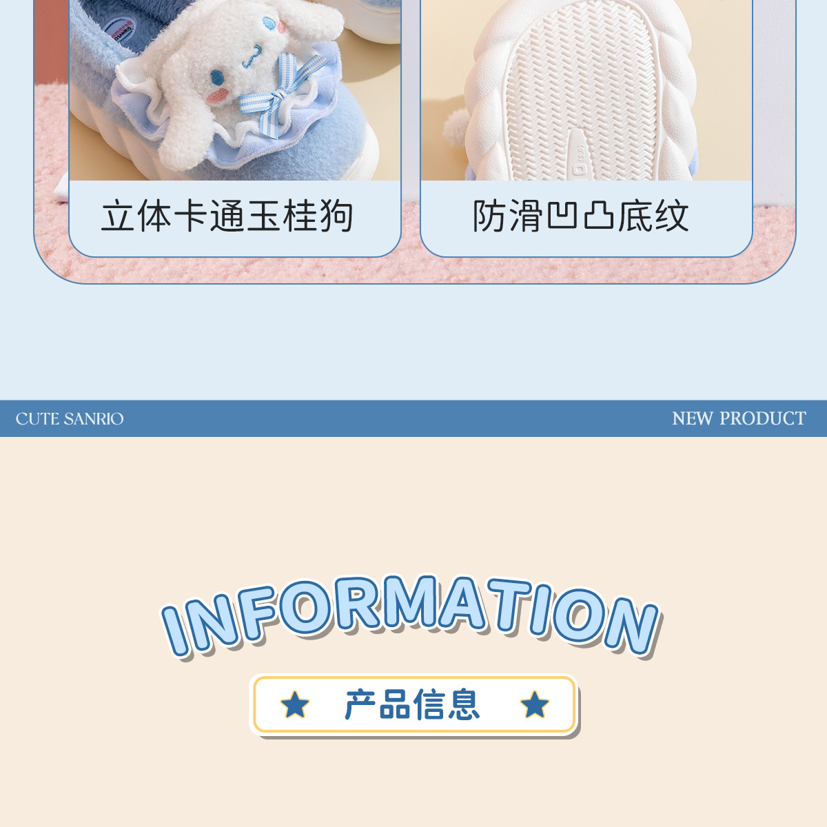 Lidani Sanrio Yugui 개 만화 어린이 면화 신발 겨울 착용 따뜻하고 푹신한 양모 슬리퍼 미끄럼 방지 아기스토어 가기