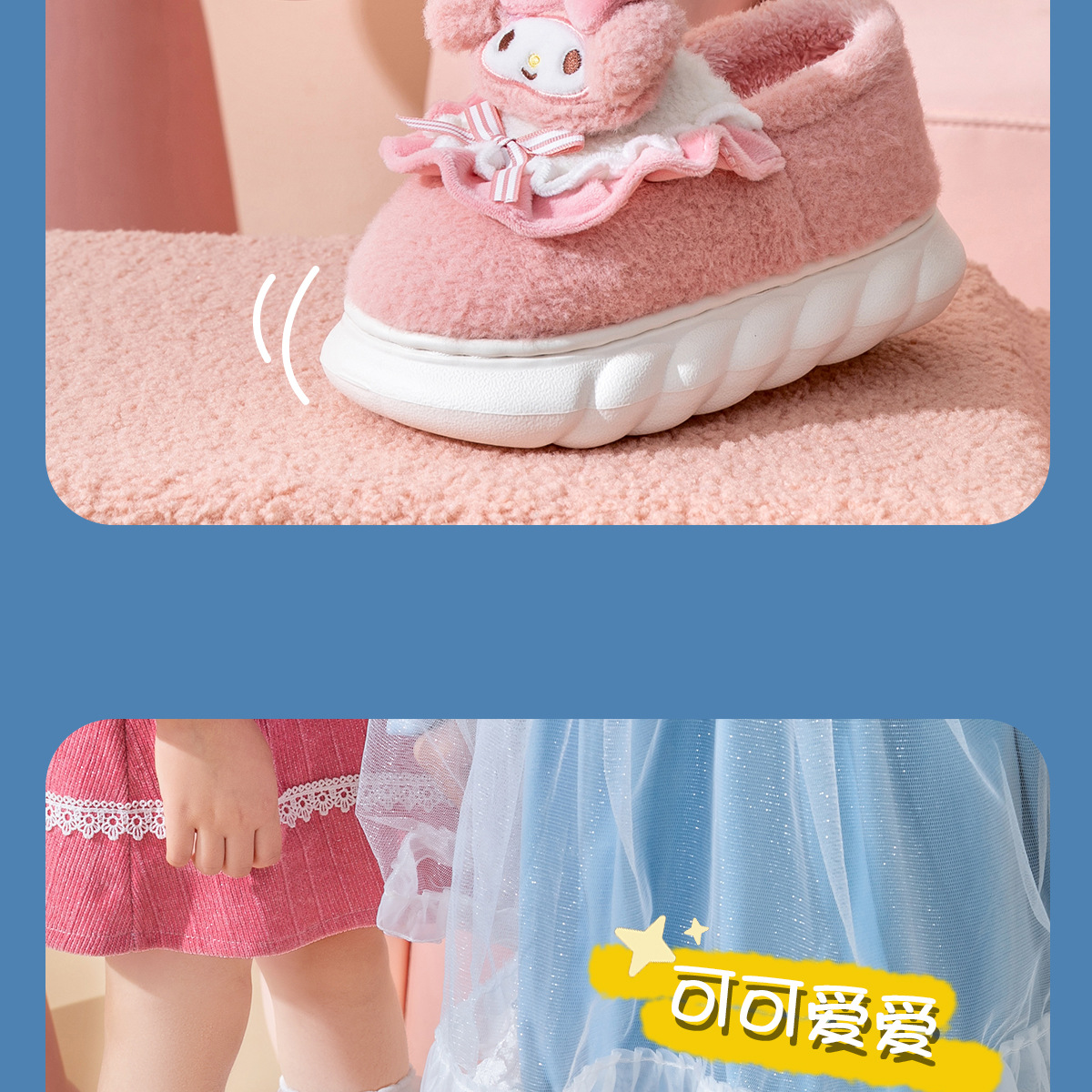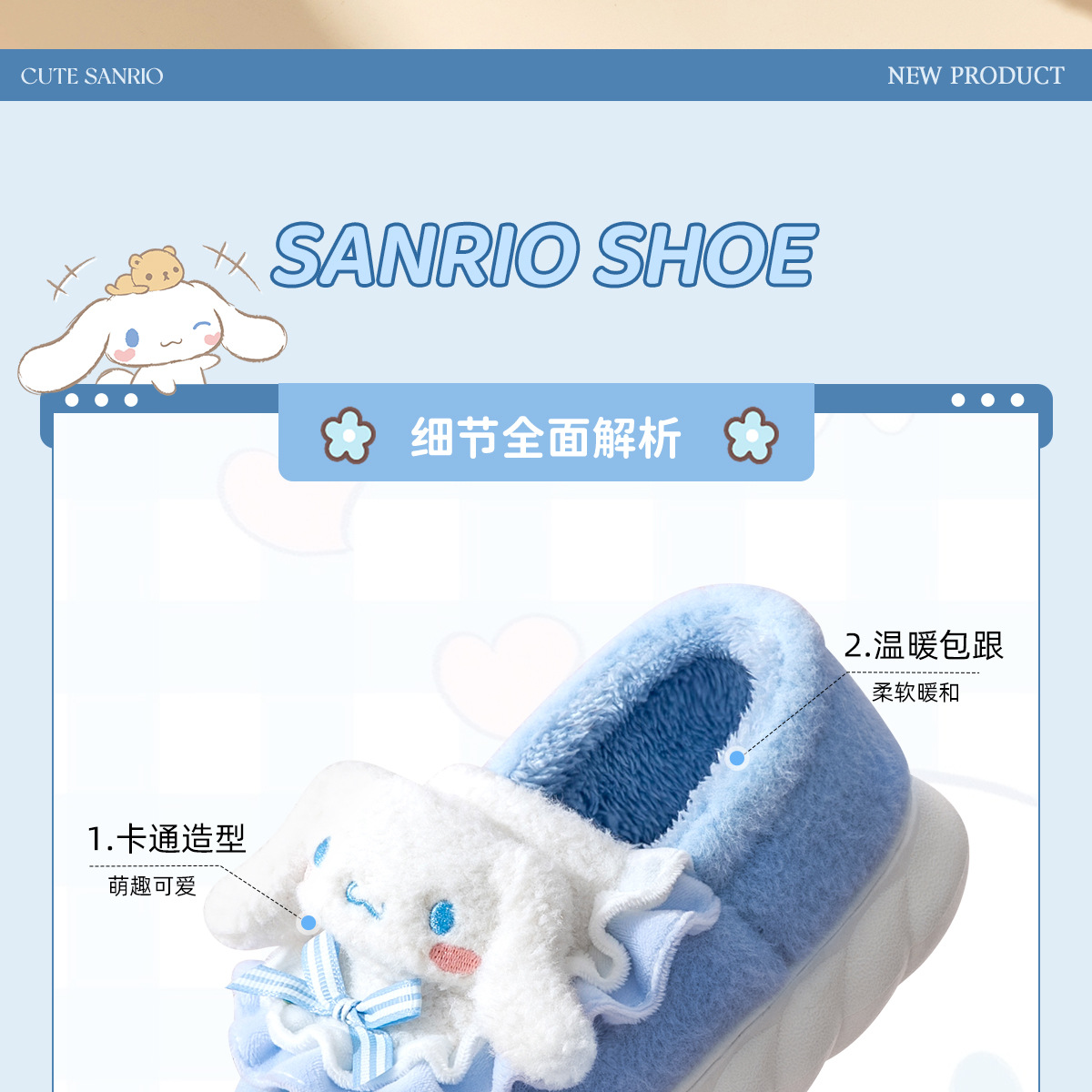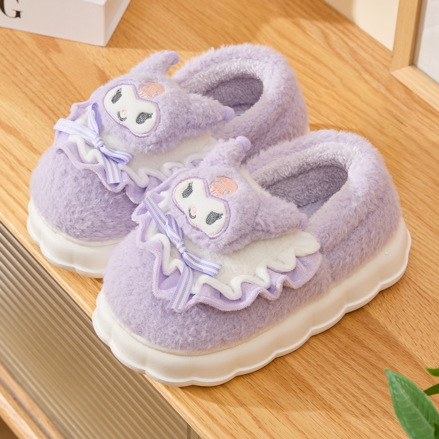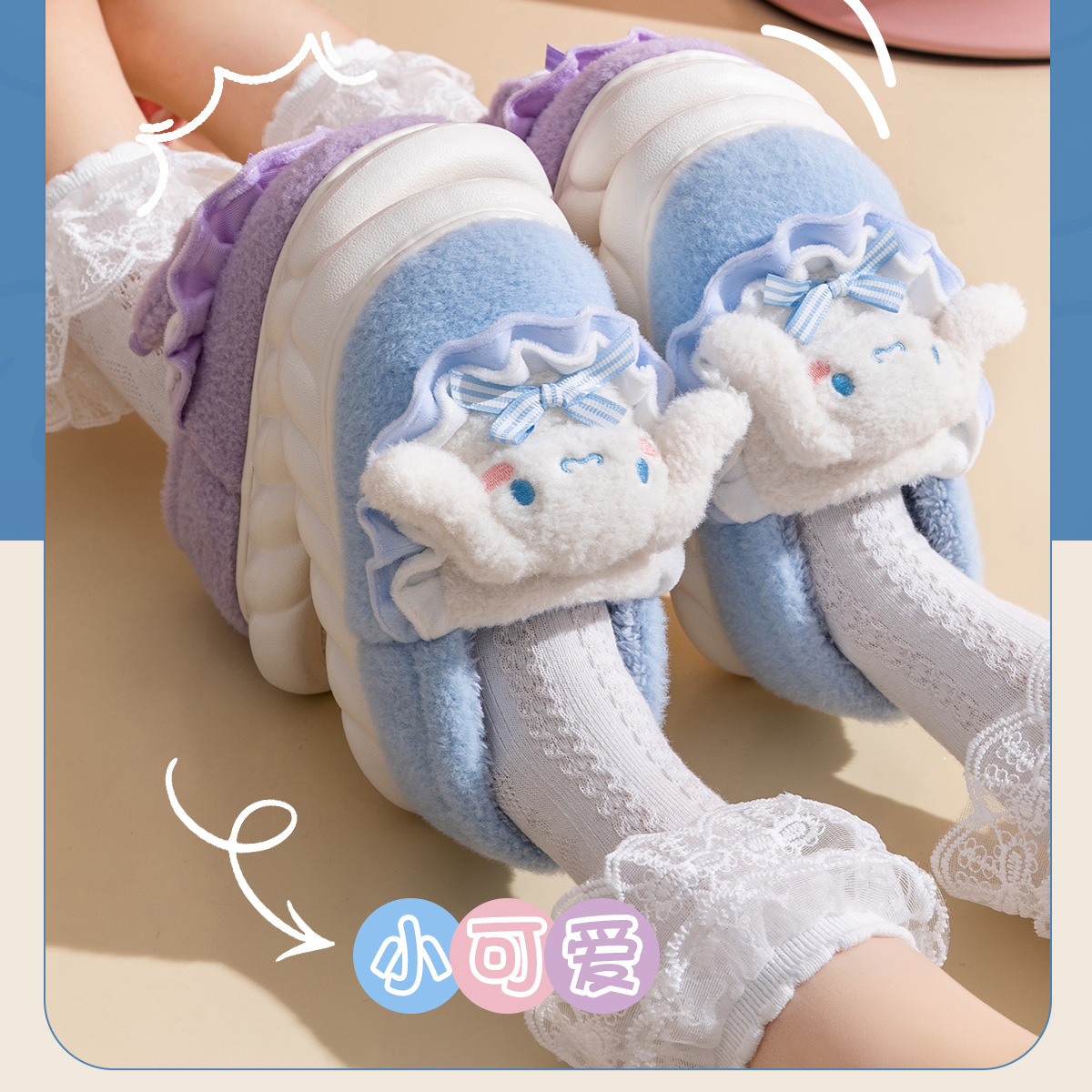 Lidani Sanrio Yugui 개 만화 어린이 면화 신발 겨울 착용 따뜻하고 푹신한 양모 슬리퍼 미끄럼 방지 아기스토어 가기