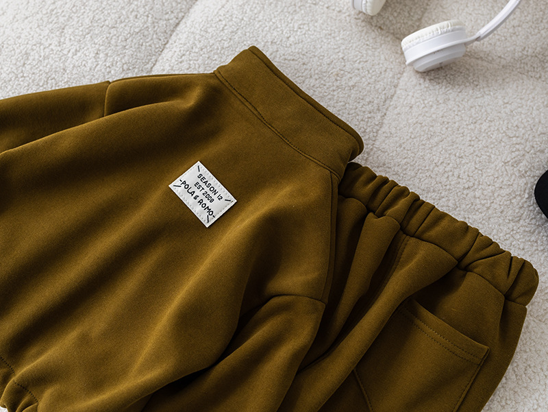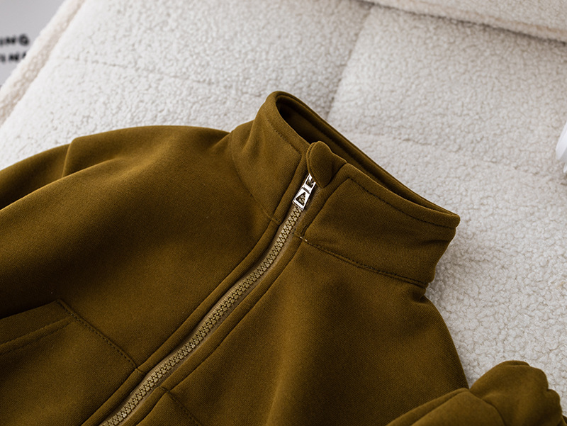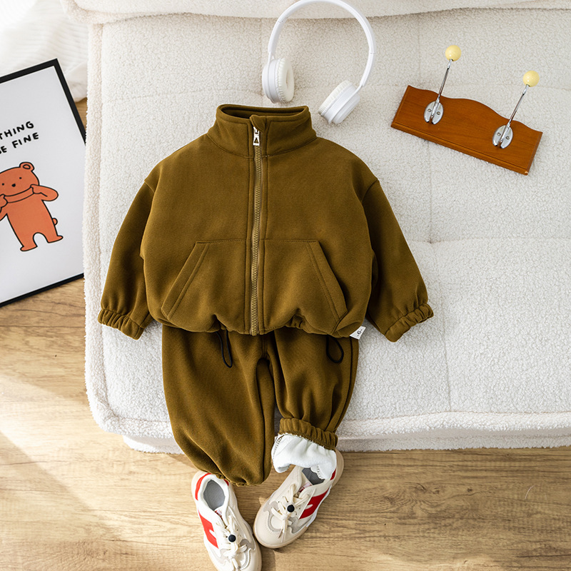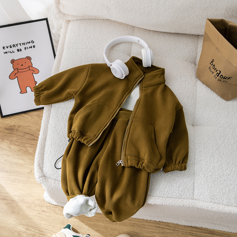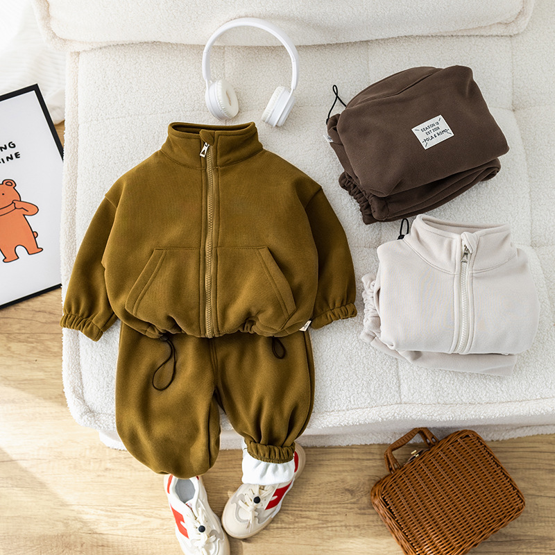 무료 배송 Yikids 한국 스타일 아동복 가을 겨울 세트 단색 지퍼 셔츠 일체형 벨벳 긴팔 투피스 세트스토어 가기