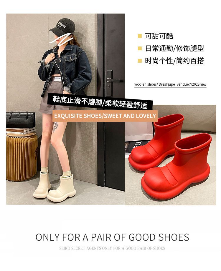 2023 신상품 장화 여성 유행 아웃웨어 EVA 방수 신발 짧은 장화 두꺼운 단독 첼시 마틴 부츠