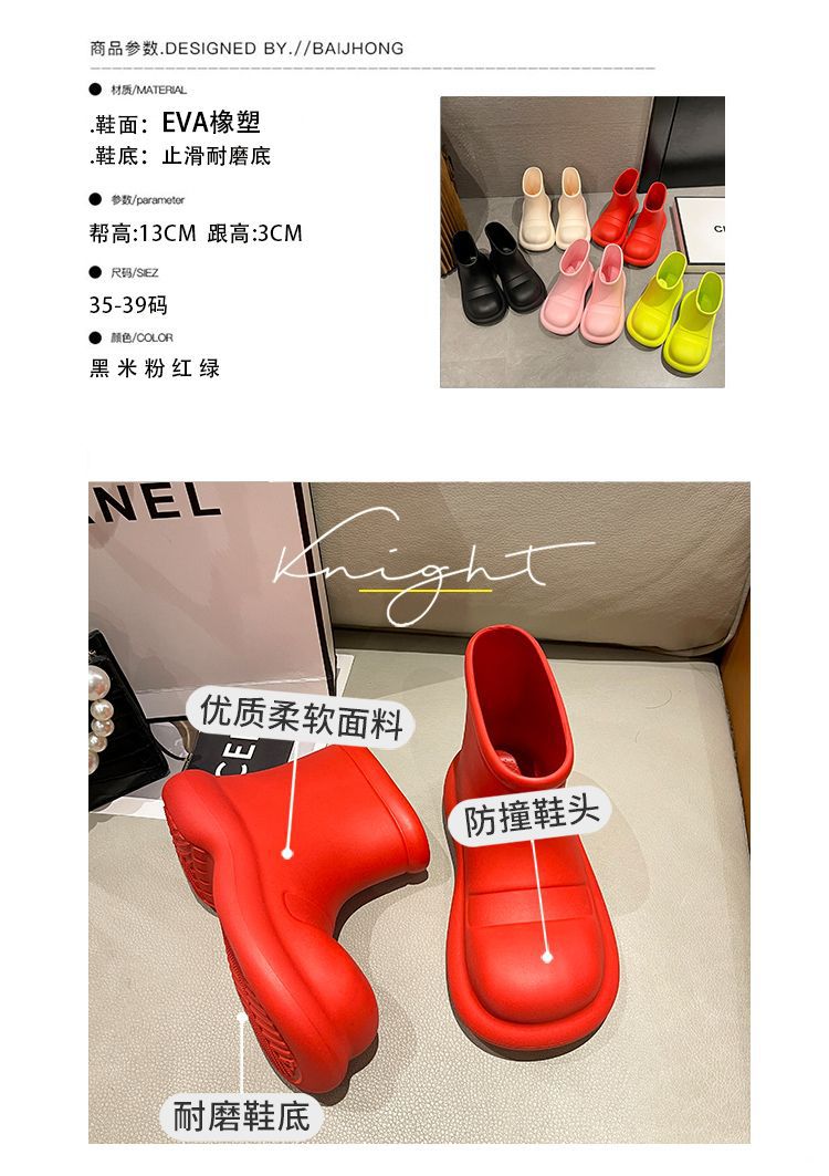 2023 신상품 장화 여성 유행 아웃웨어 EVA 방수 신발 짧은 장화 두꺼운 단독 첼시 마틴 부츠스토어 가기