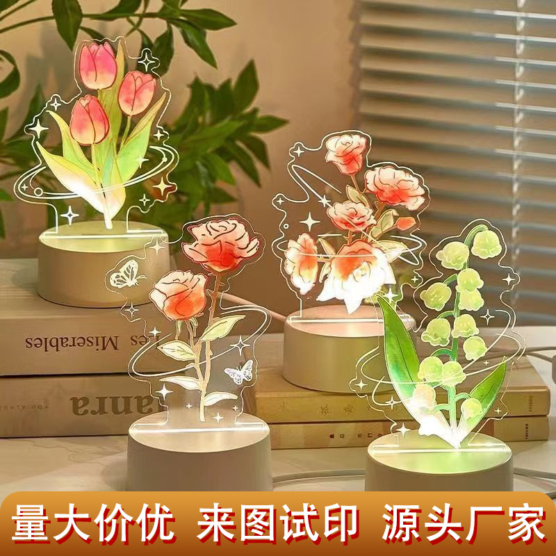 장미 튤립 릴리 난초 UV 컬러 인쇄 3D 야간 조명 충전 터치 USB 테이블 램프