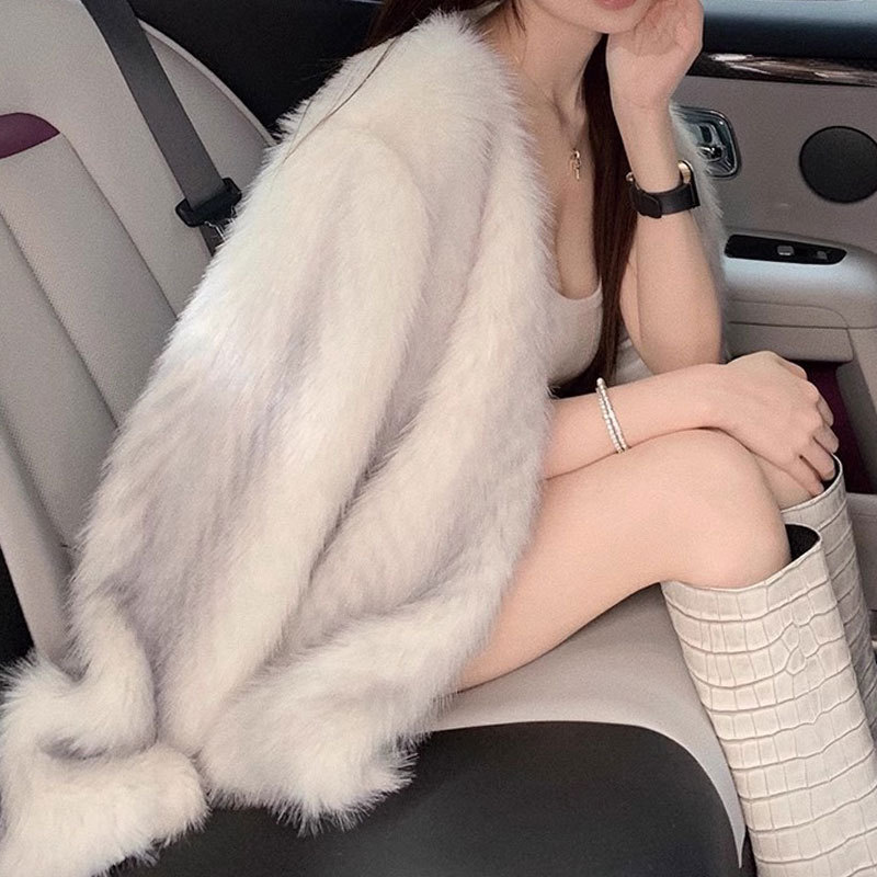 [히말라야] 칼라리스 편안한 소프트 왁스 폭스 모피 여성용 2023 가을 겨울 새 여성 코트