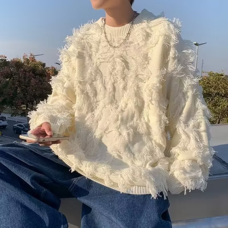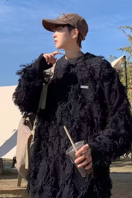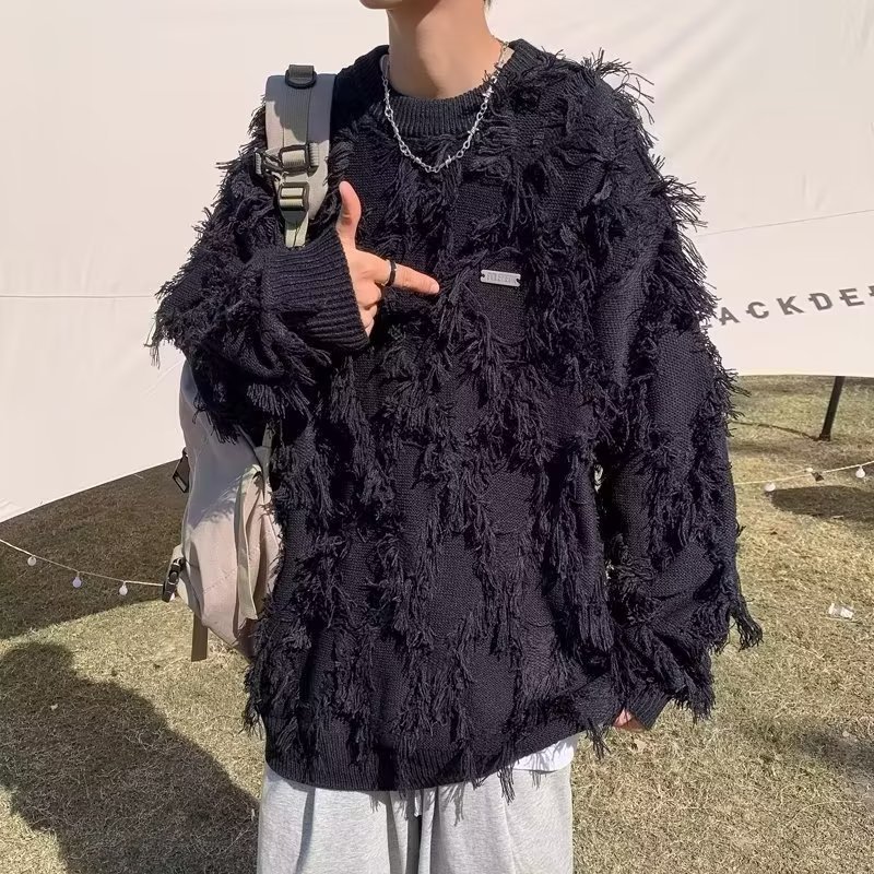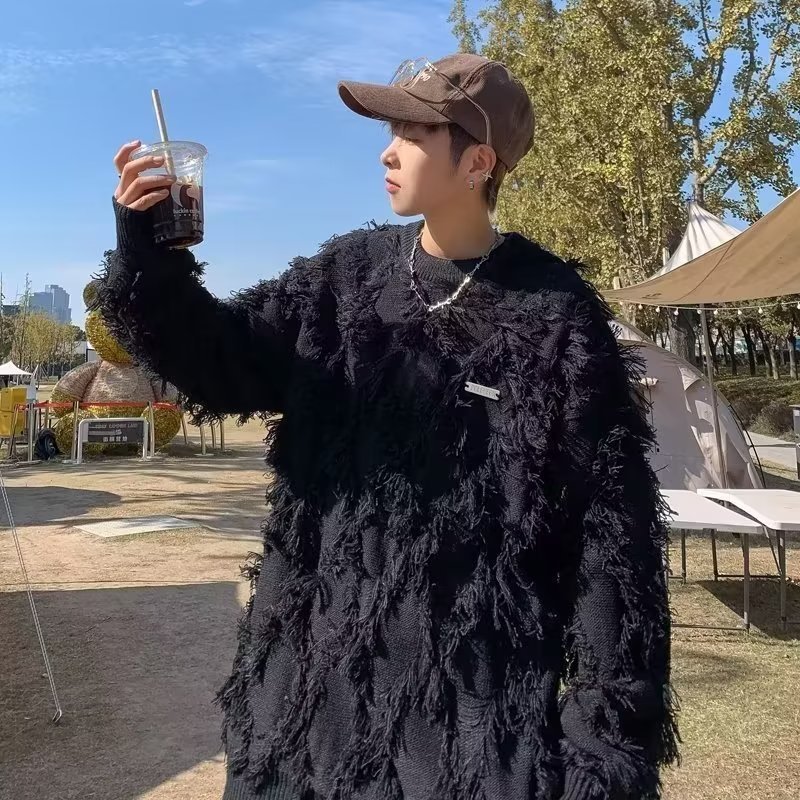 가을과 겨울 미국 복고풍 프린지 풀오버 스웨터 스웨터 남성용 하이 스트리트 패션 브랜드 디자인 틈새 재킷스토어 가기