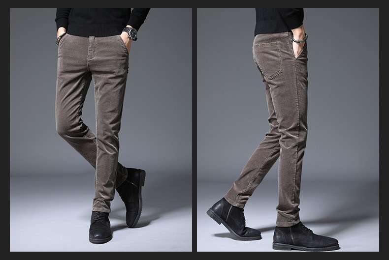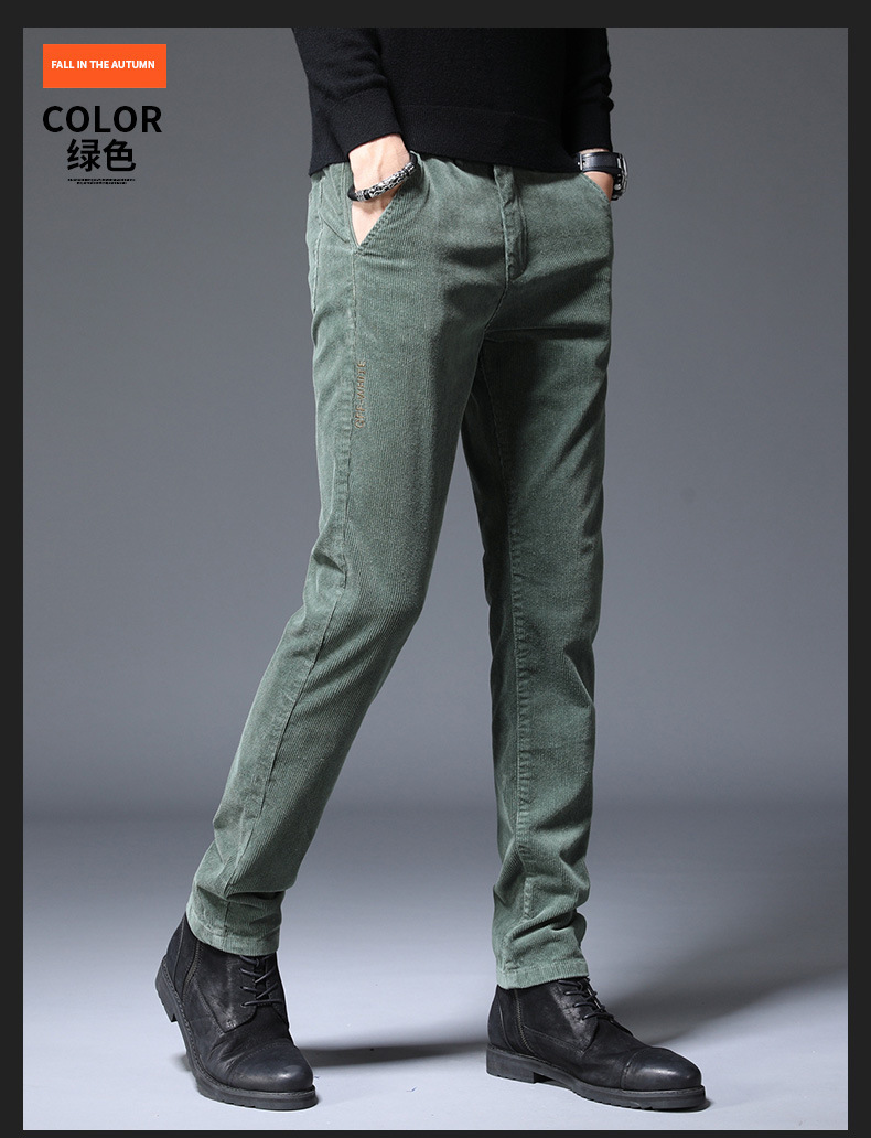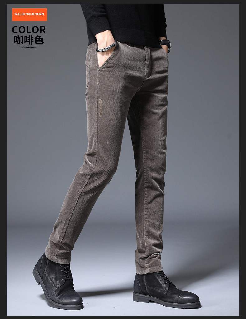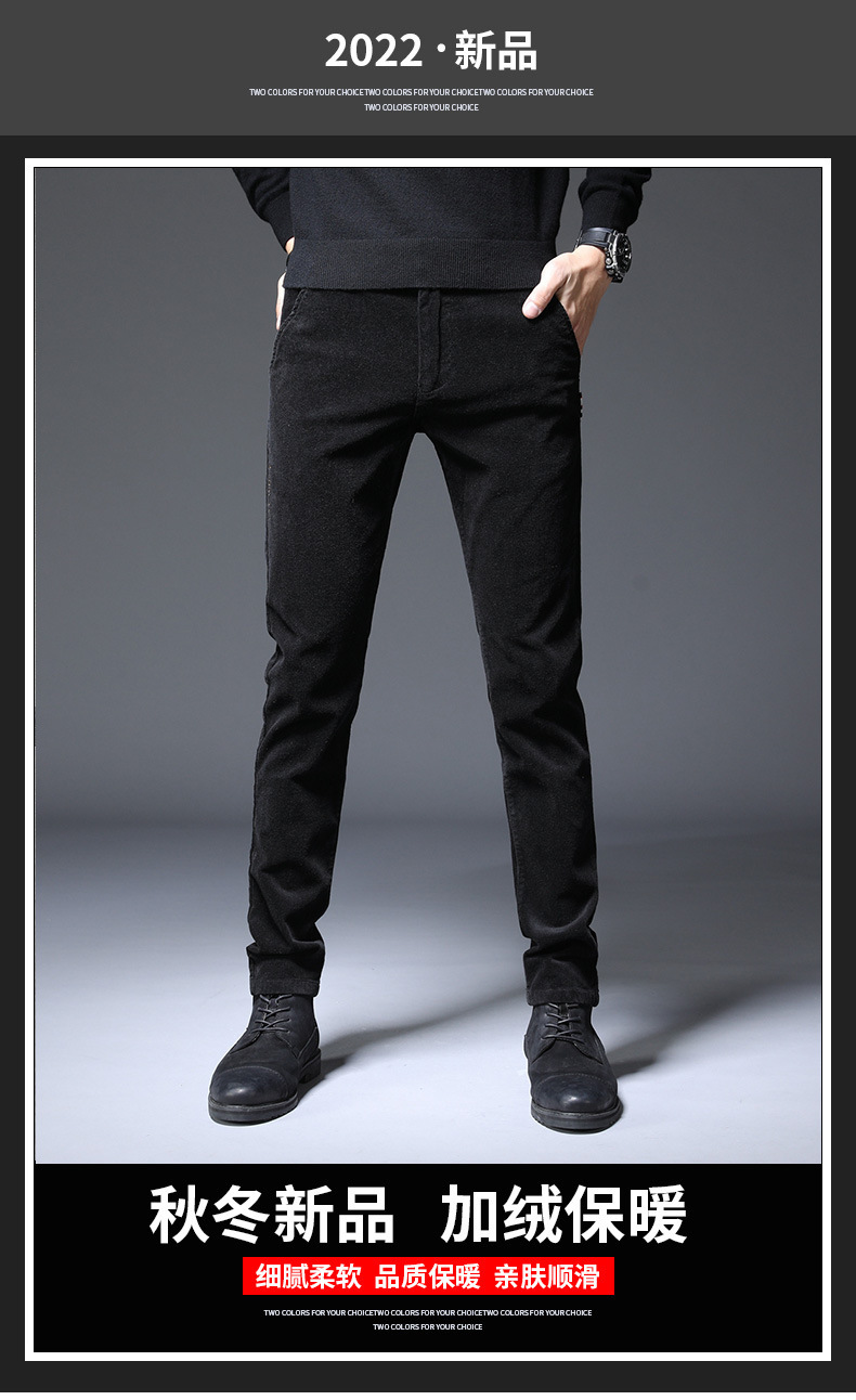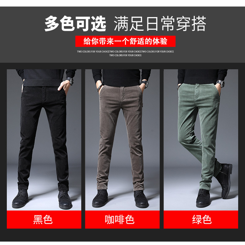 가을과 겨울 기모 남성 캐주얼 바지 슬림핏 스트레이트 코듀로이 바지 남성 유행 모든 일치 겨울 코듀로이 바지스토어 가기