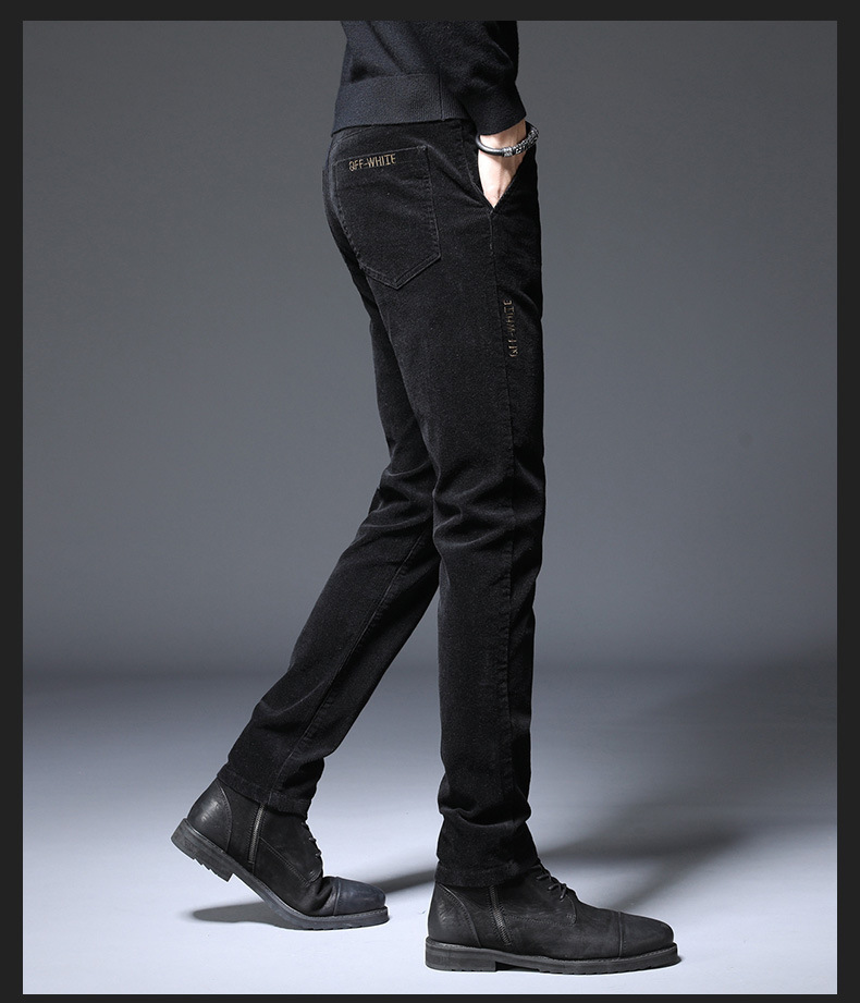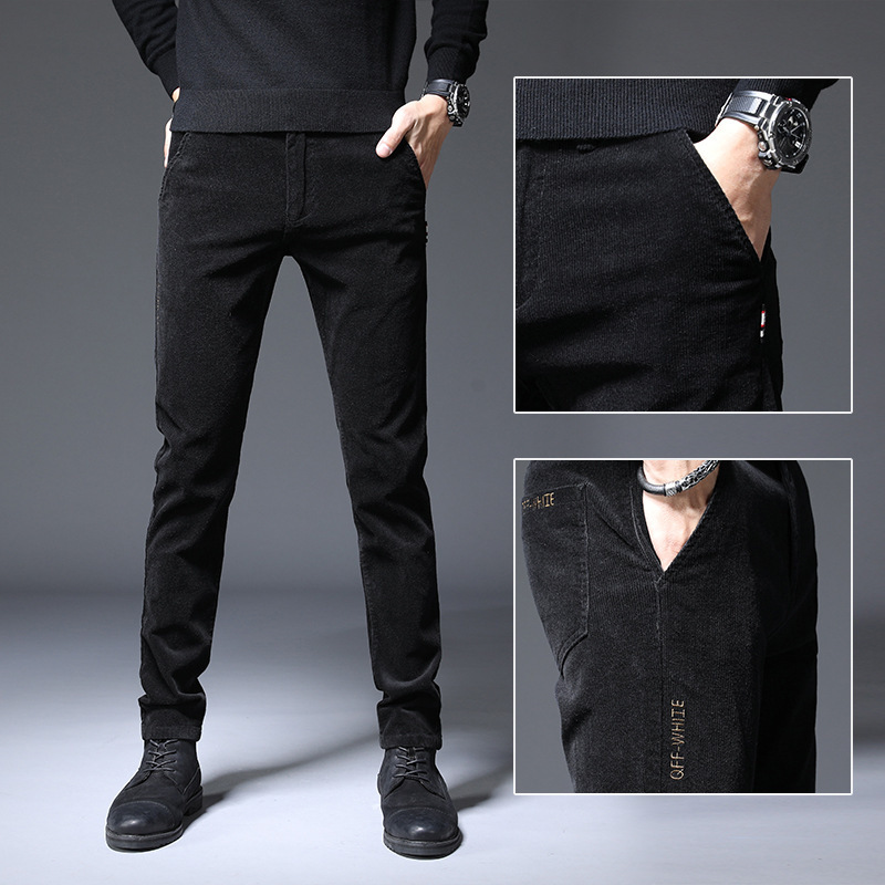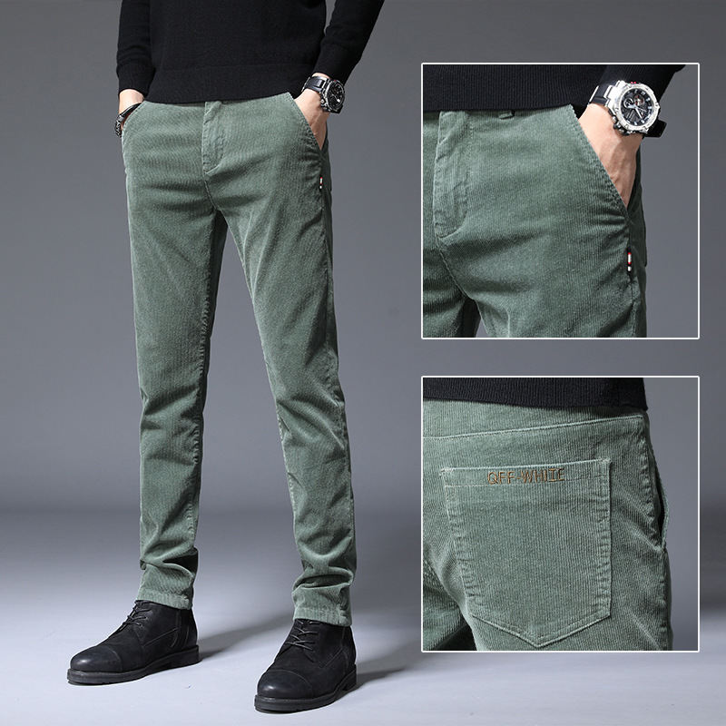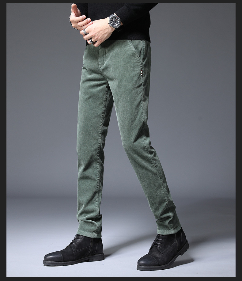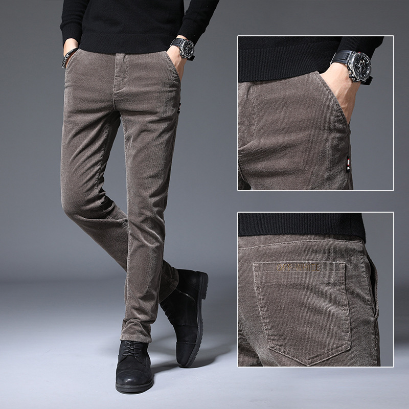 가을과 겨울 기모 남성 캐주얼 바지 슬림핏 스트레이트 코듀로이 바지 남성 유행 모든 일치 겨울 코듀로이 바지스토어 가기