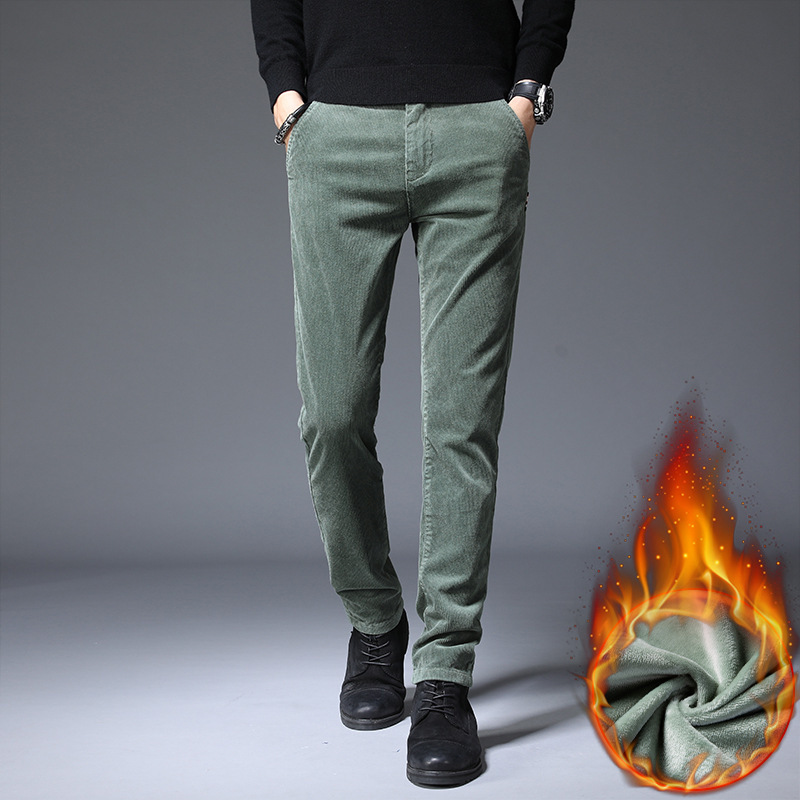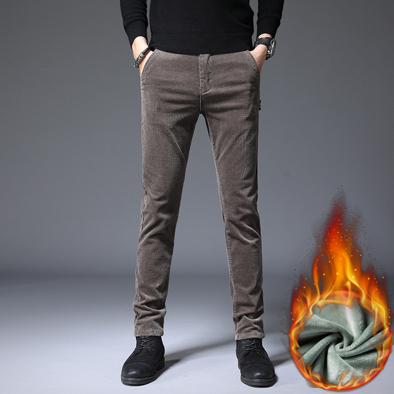 가을과 겨울 기모 남성 캐주얼 바지 슬림핏 스트레이트 코듀로이 바지 남성 유행 모든 일치 겨울 코듀로이 바지