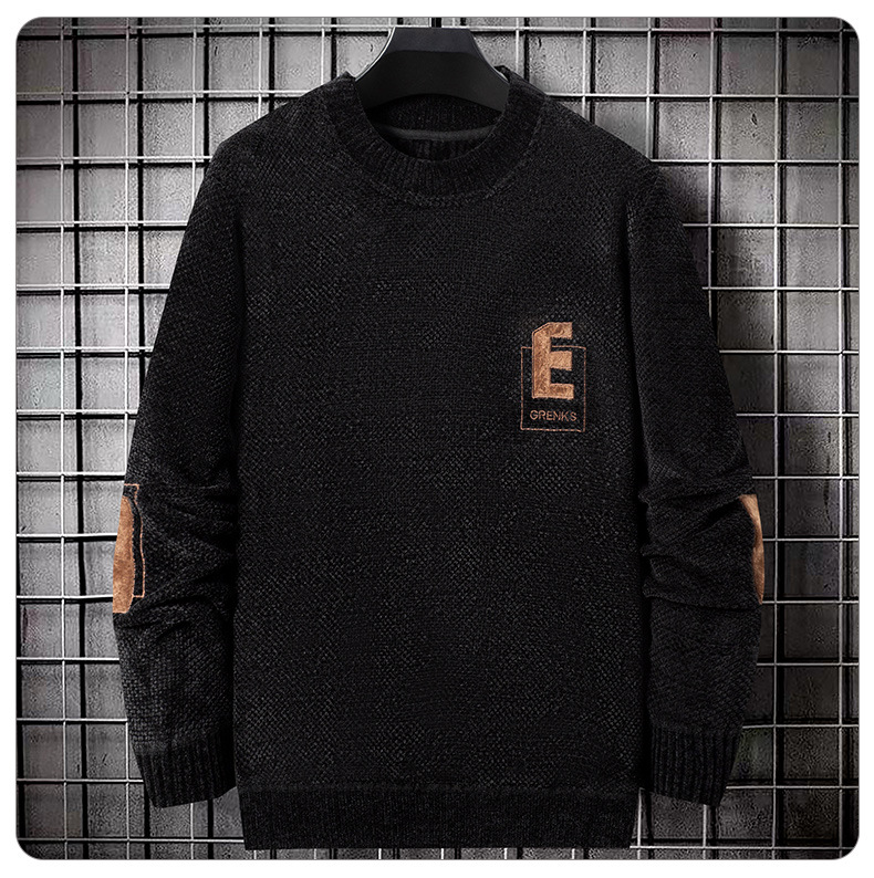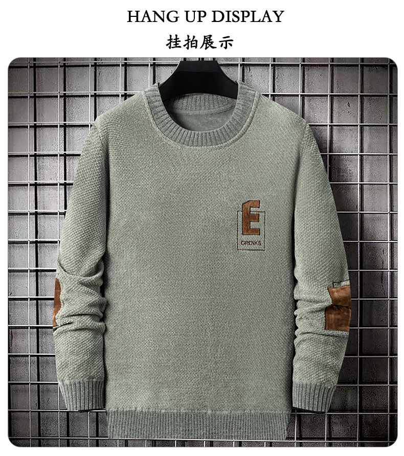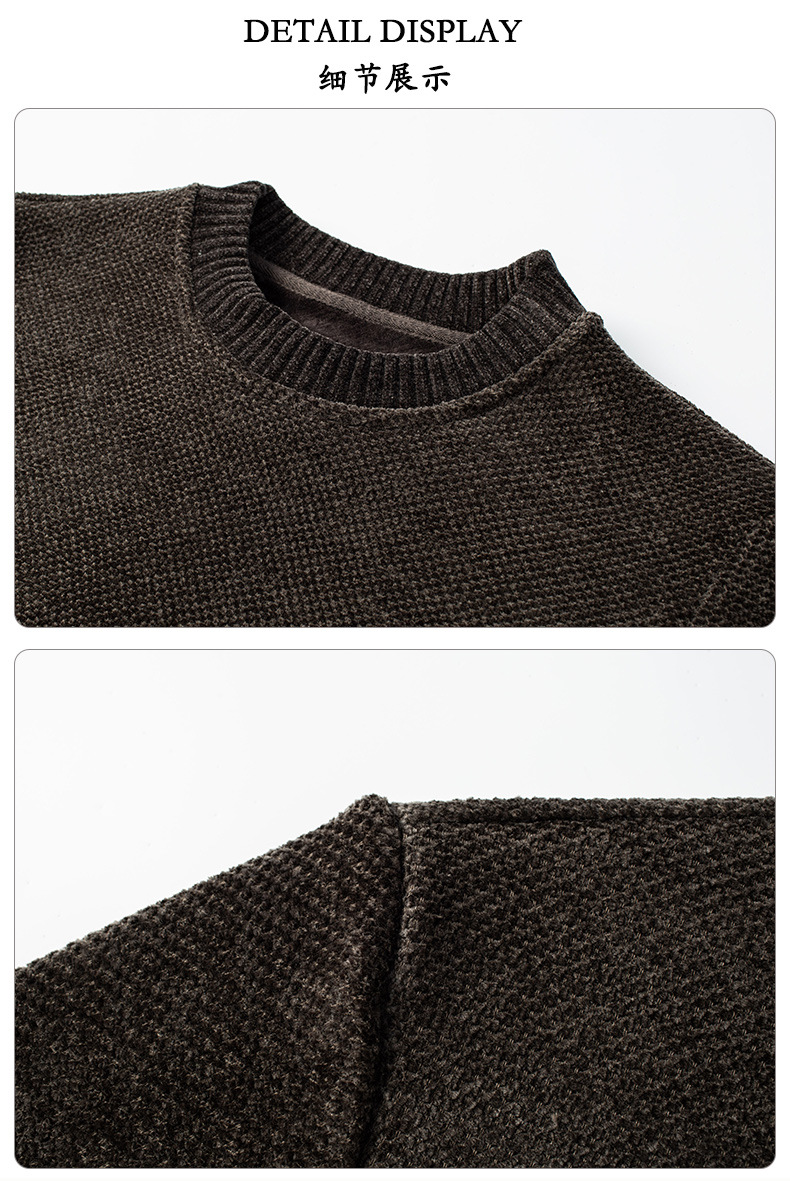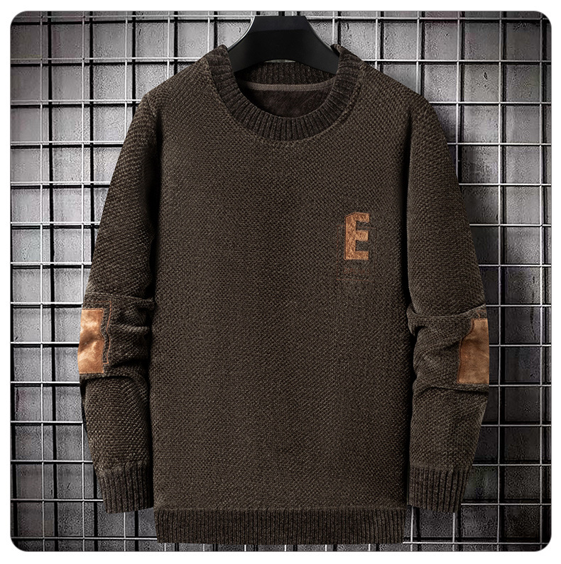 2023 새로운 남자 기모 스웨터 유럽면 벨벳 패딩 스웨터 소년 가을과 겨울 패션 라운드 넥 스웨터
