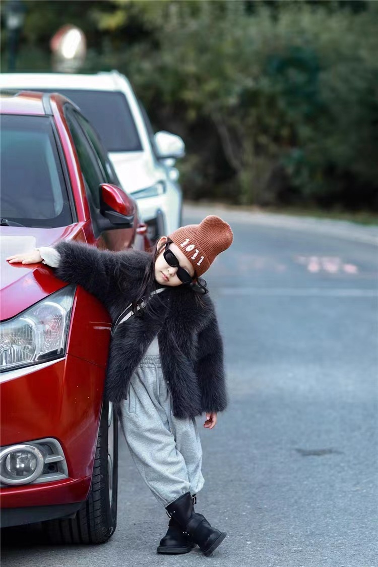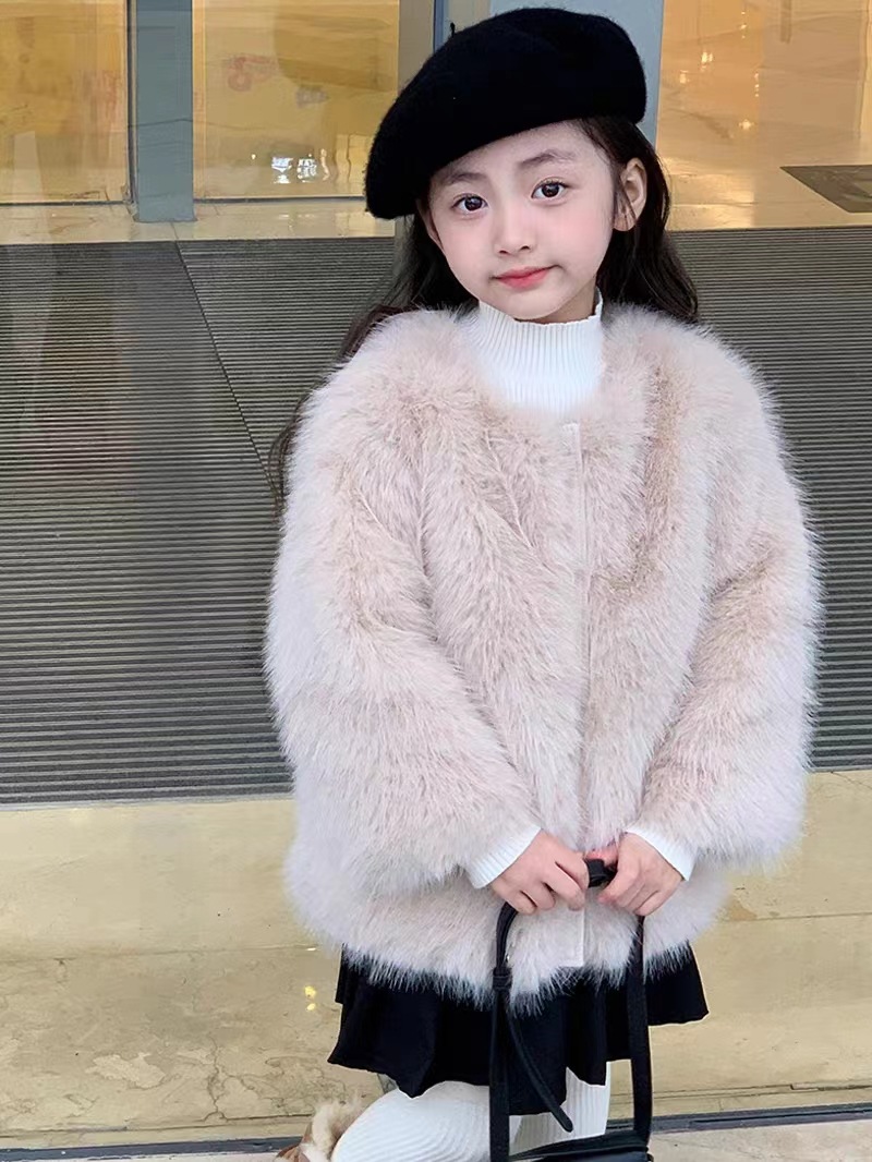 어린이 모피 코트, 세련된 어린이 모피 코튼 코트, 모피 일체형 코트, 겨울 아동복스토어 가기