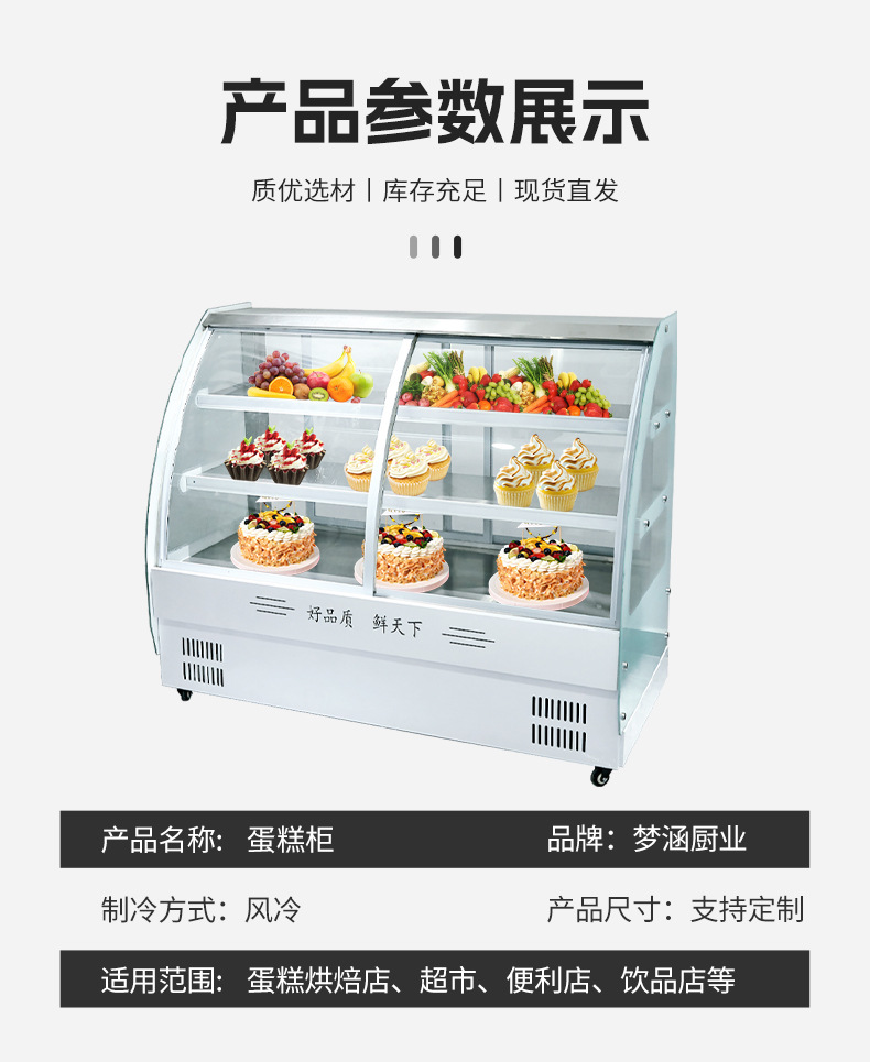 상업용 케이크 진열장, 해외 제조업체, 조리된 음식, 디저트 냉장고, 공냉식 후면 개방형 과일 보존 캐비닛