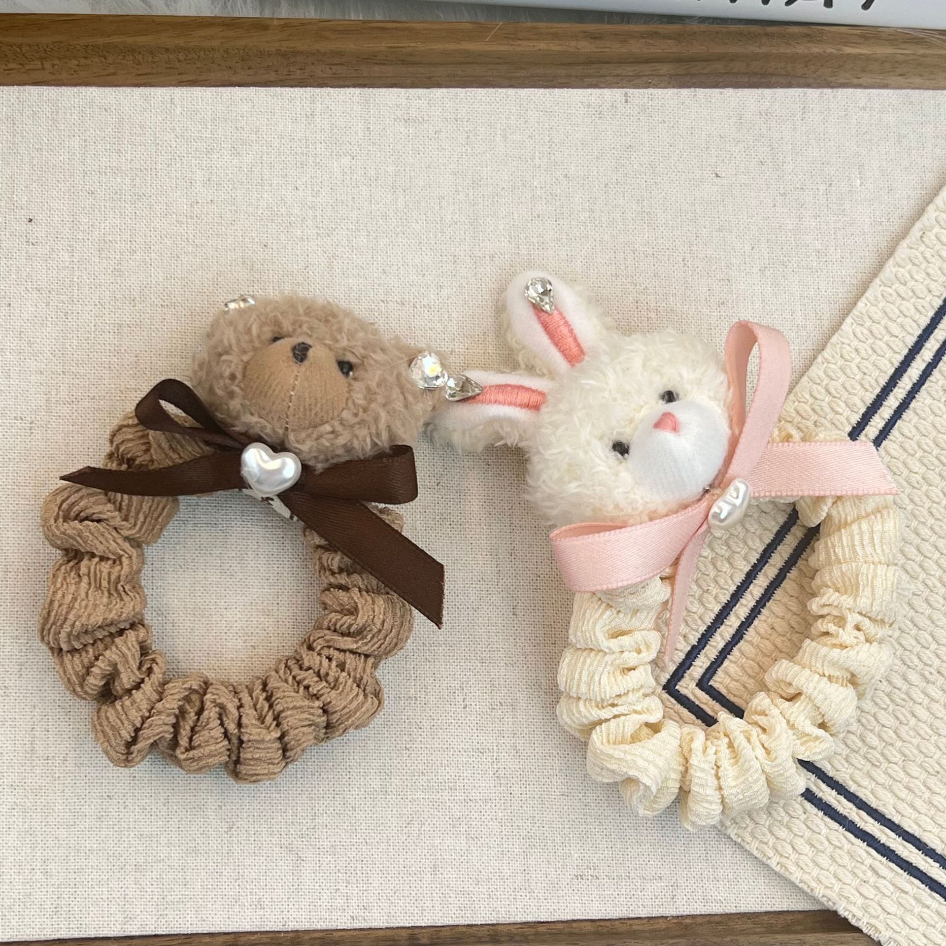 한국 만화 봉제 인형 곰 헤어 링 귀여운 소녀의 머리 장식 헤어 로프 포니 테일 토끼 고무 벨트 헤어 로프