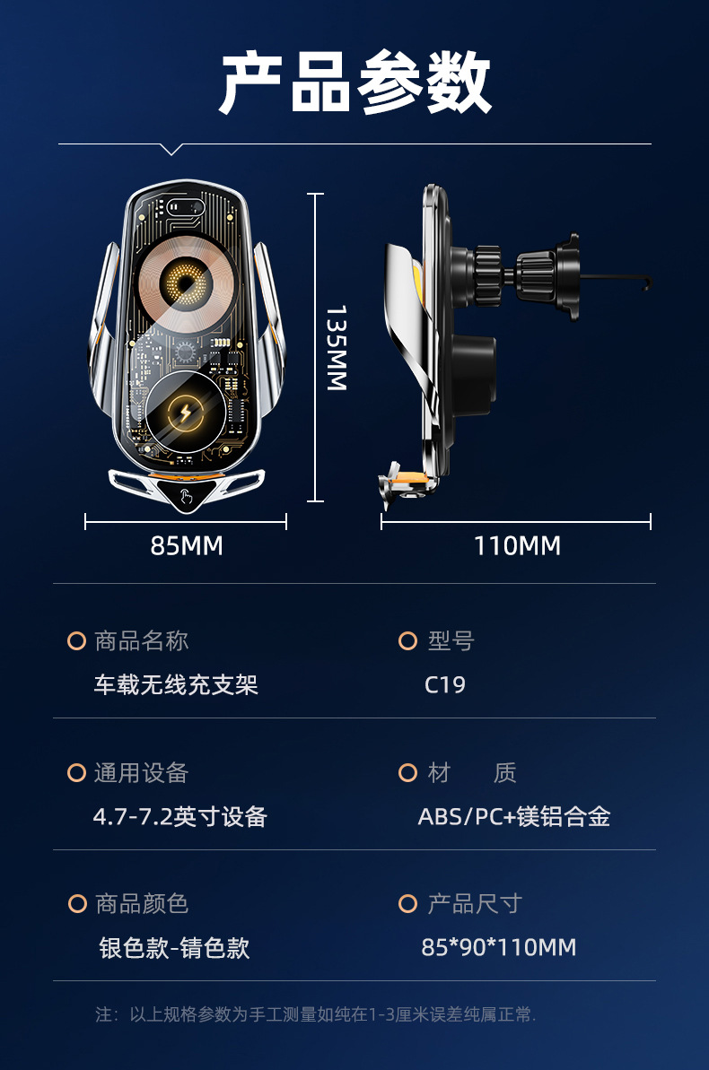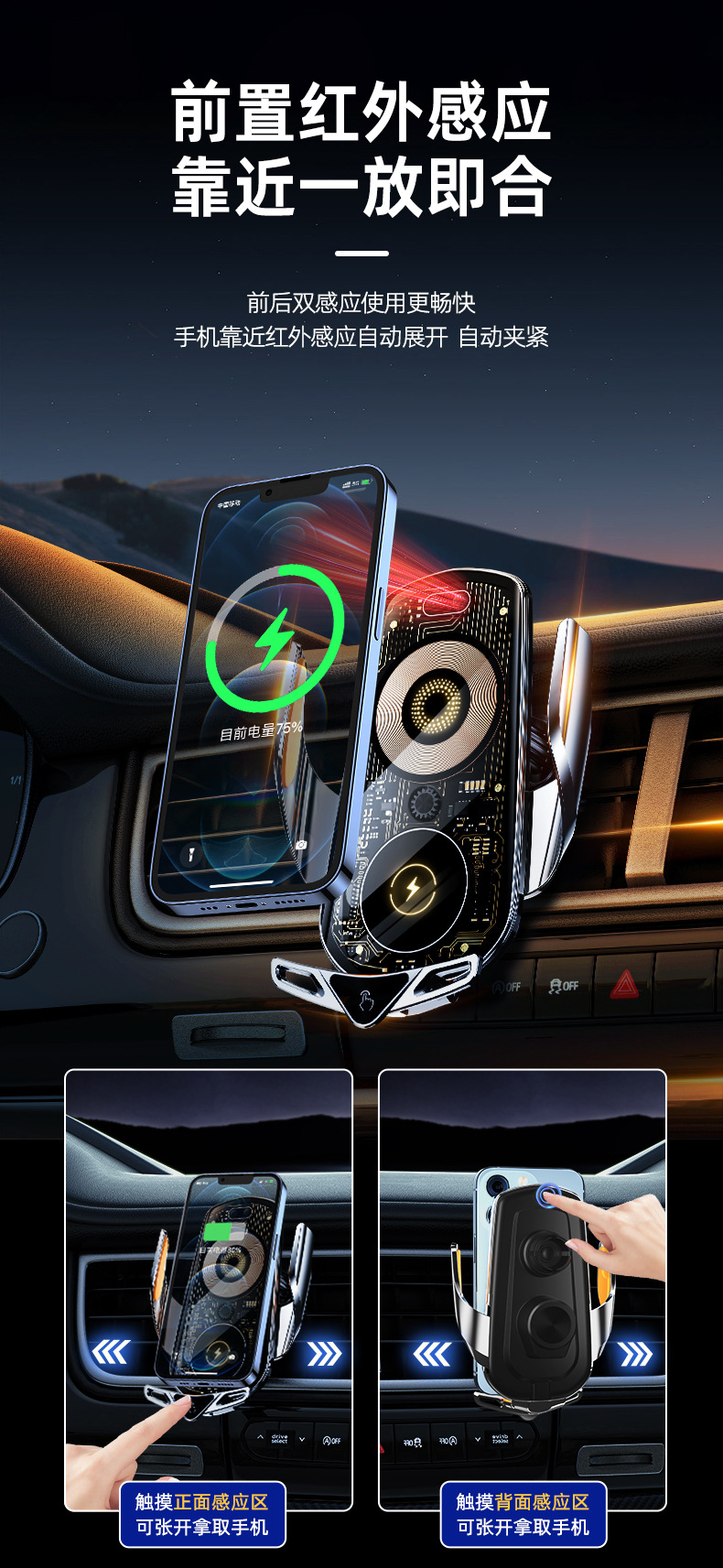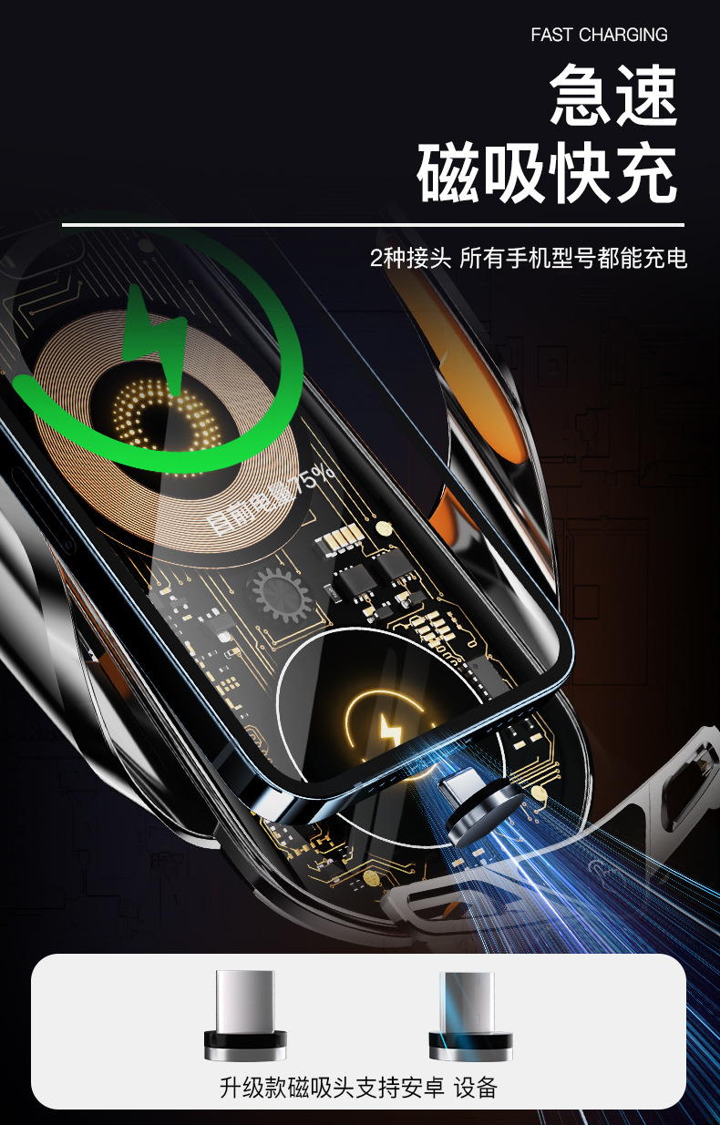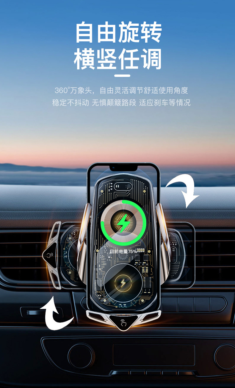 Cyberpunk 바람 자동차 무선 고속 충전 브래킷 유도 개폐 내비게이션 지원 프레임 스마트 자동차 휴대 전화 브래킷
