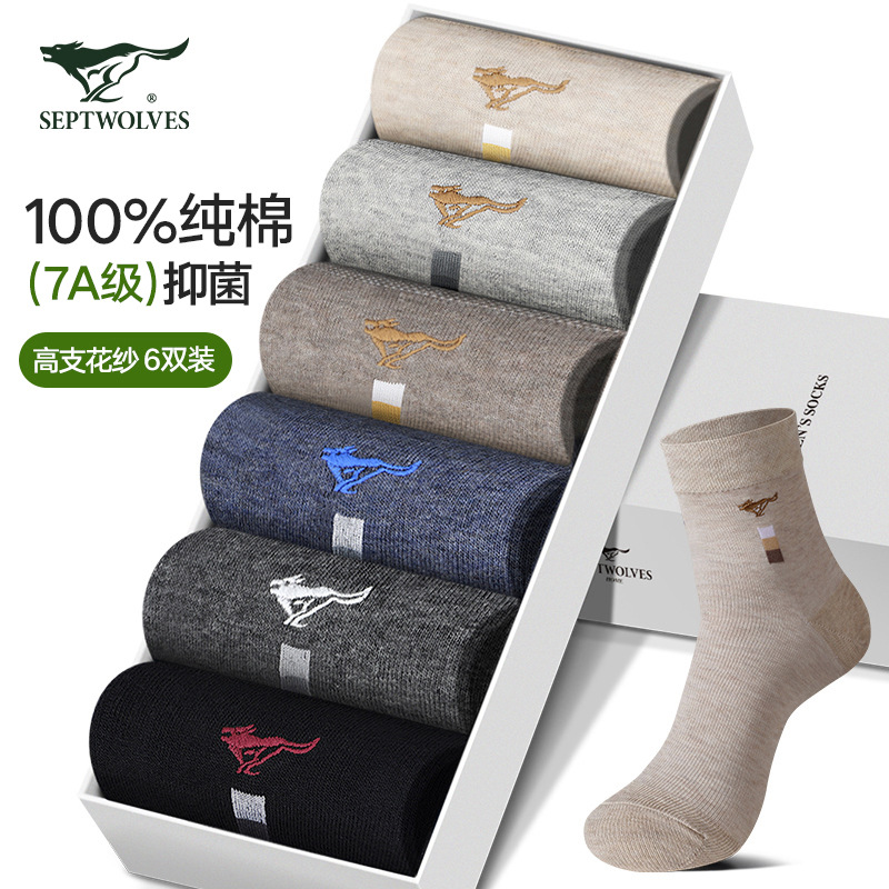세븐 울프면 항균 캐주얼 남성용 양말 남성용 코튼 포시즌 통기성 패션 캐주얼 양말 미드 튜브 양말스토어 가기