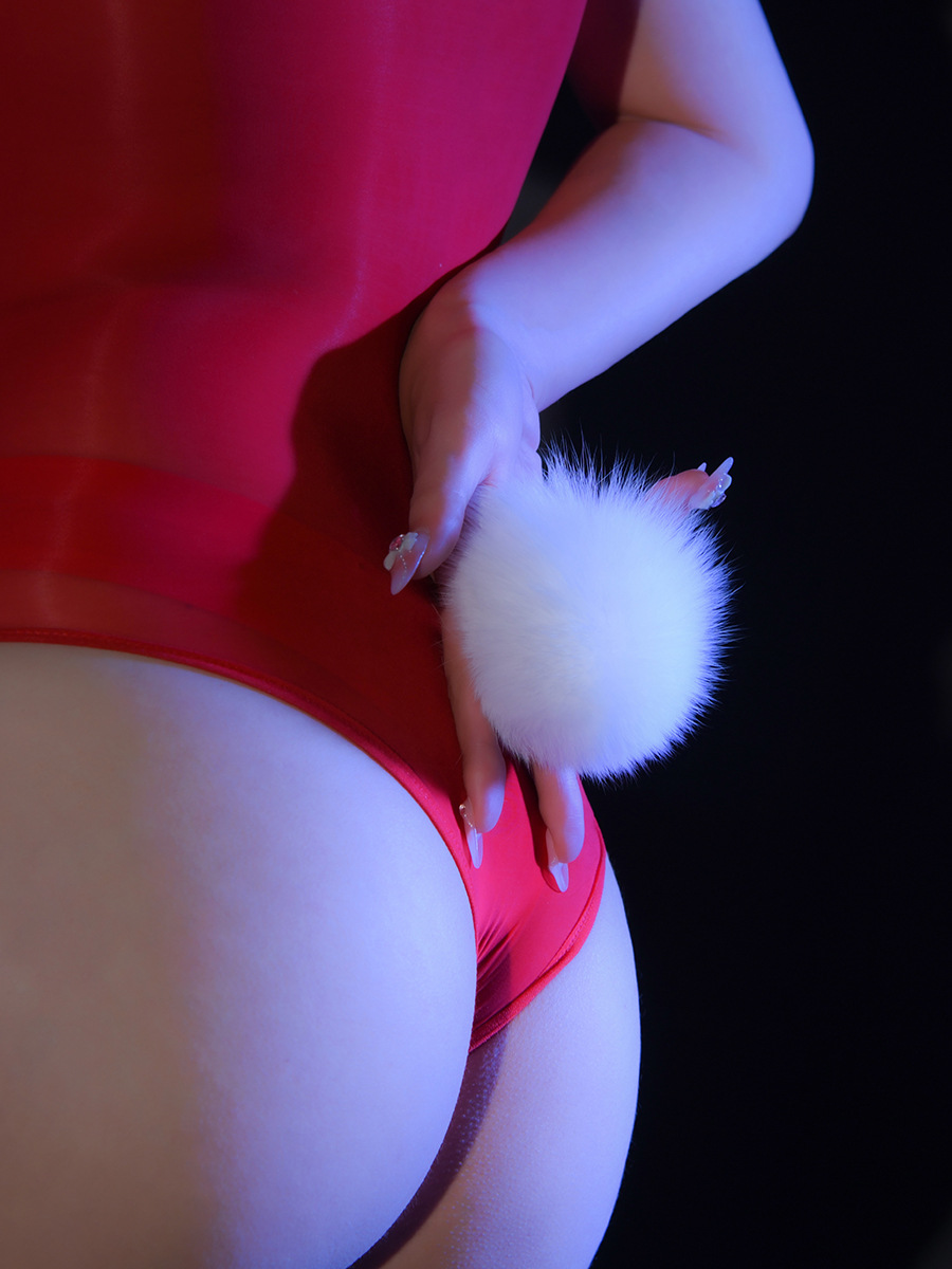 Qing 그는 섹시한 실크 스타킹 원피스 수영복 사이드 원활한 말 기름 양말 오픈 가랑이 여성 섹시한 토끼 유니폼 모피 볼 꼬리