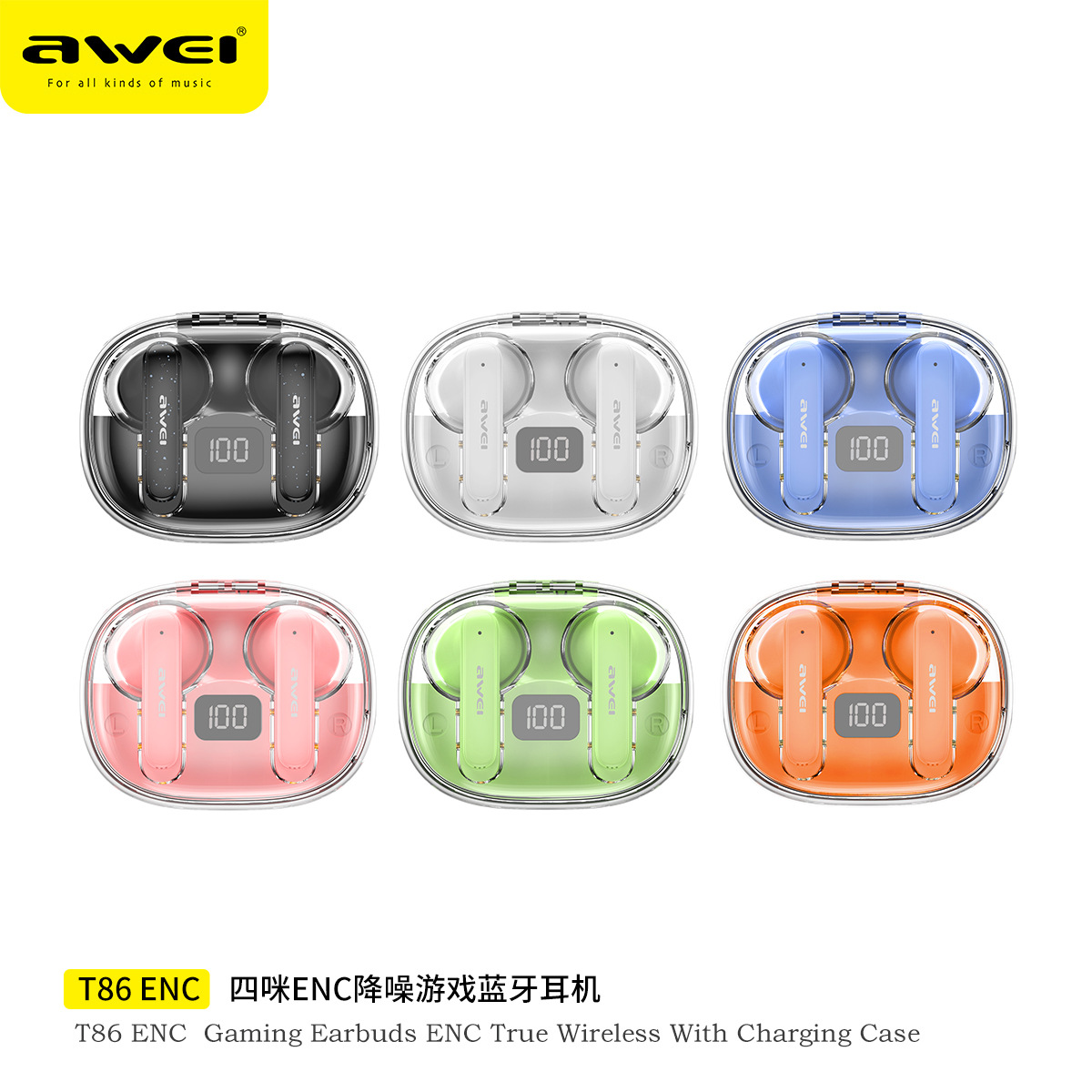 AWEI 국경 4 방향 ENC 통화 소음 감소 TWS 블루투스 5.3 헤드셋 공장 직접 공급 게임 헤드셋스토어 가기