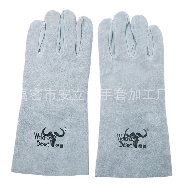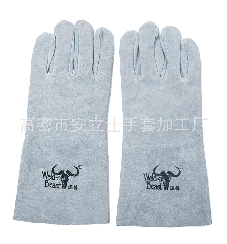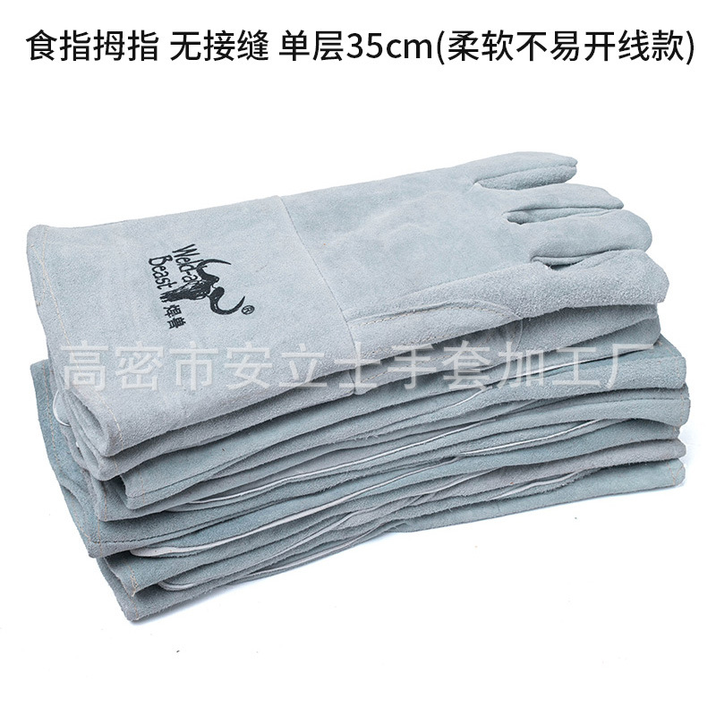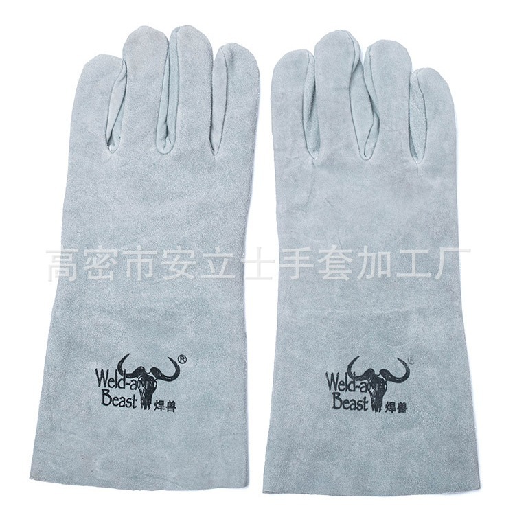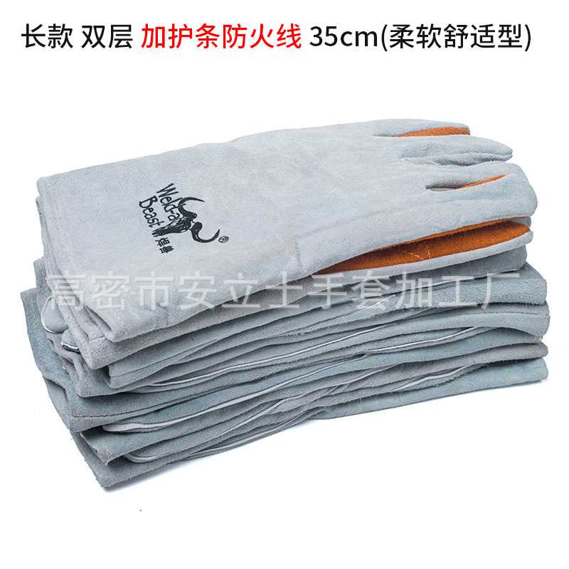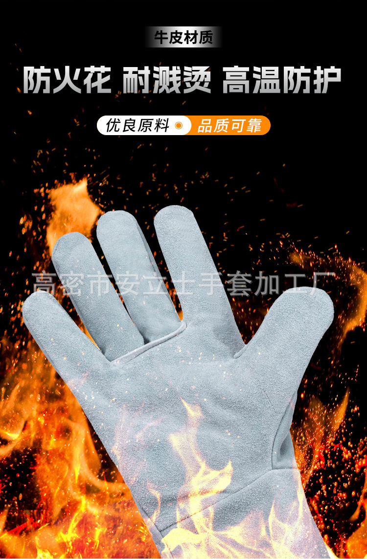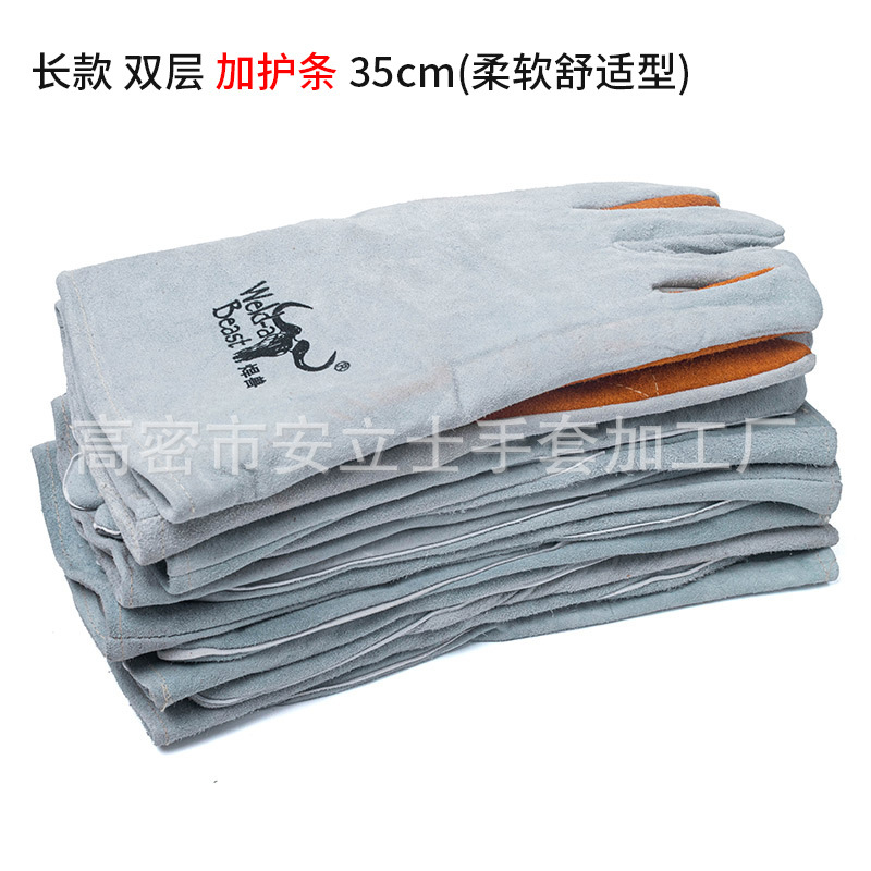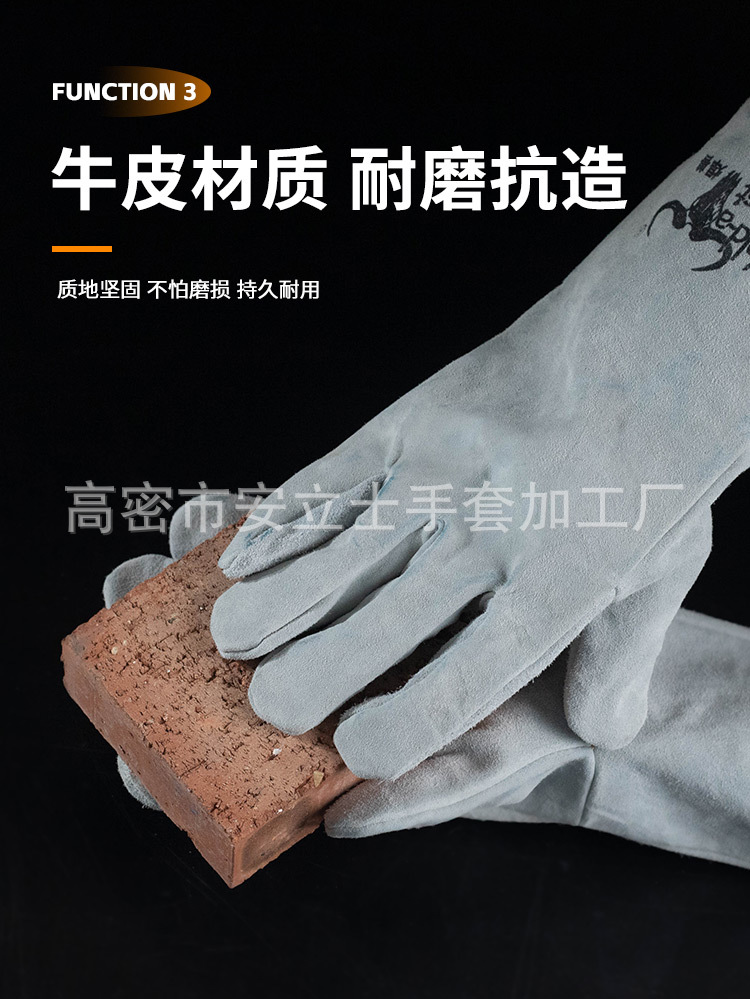 용접 야수 4150 Cowhide 용접기 장갑 용접 안티-scald 반대로 높은 온도 긴 두꺼운 사이트 처리 및 수리 노동 보호 손