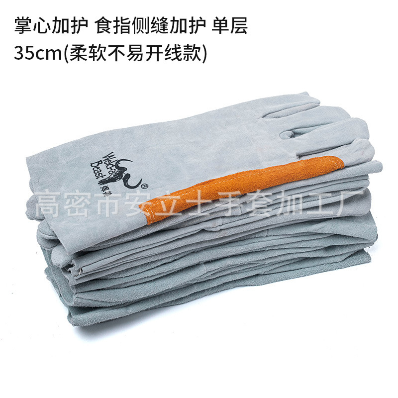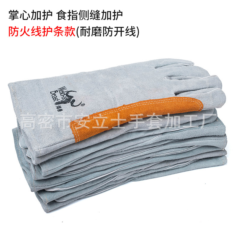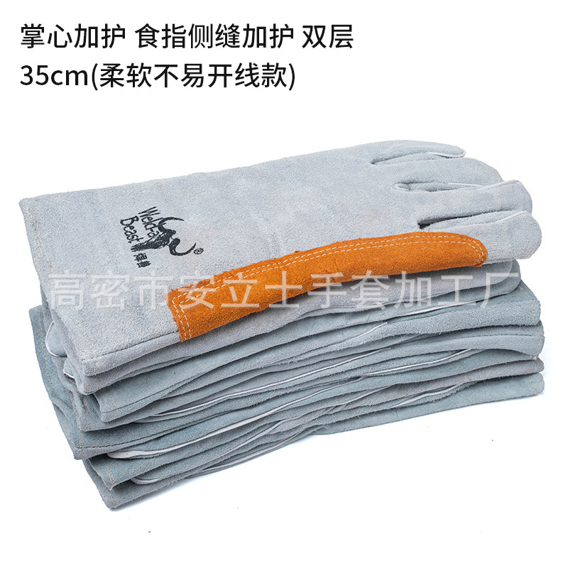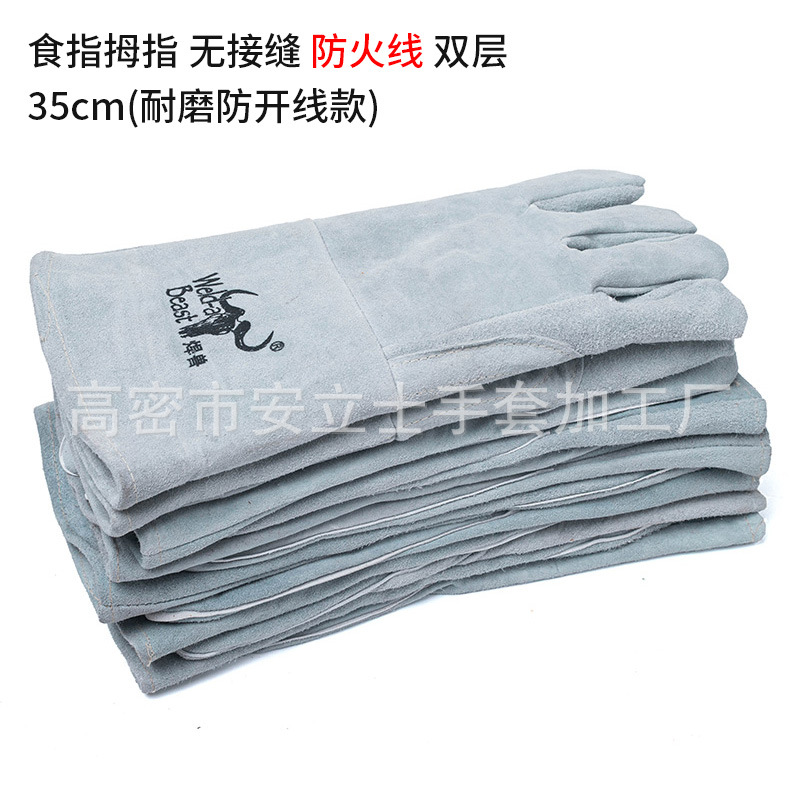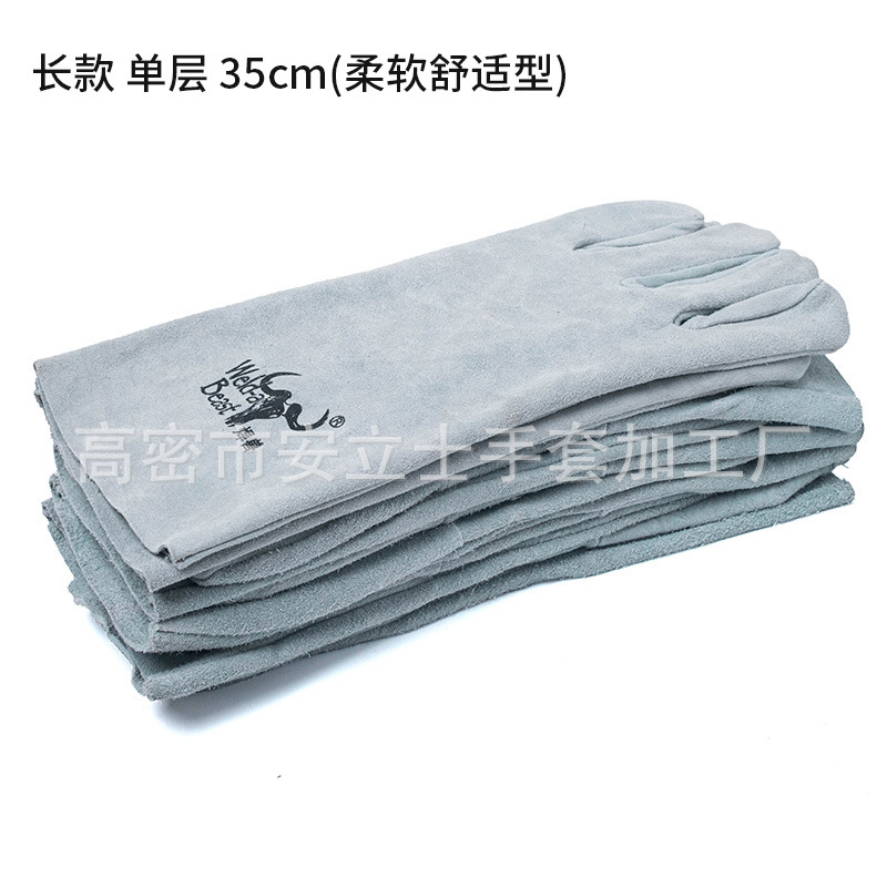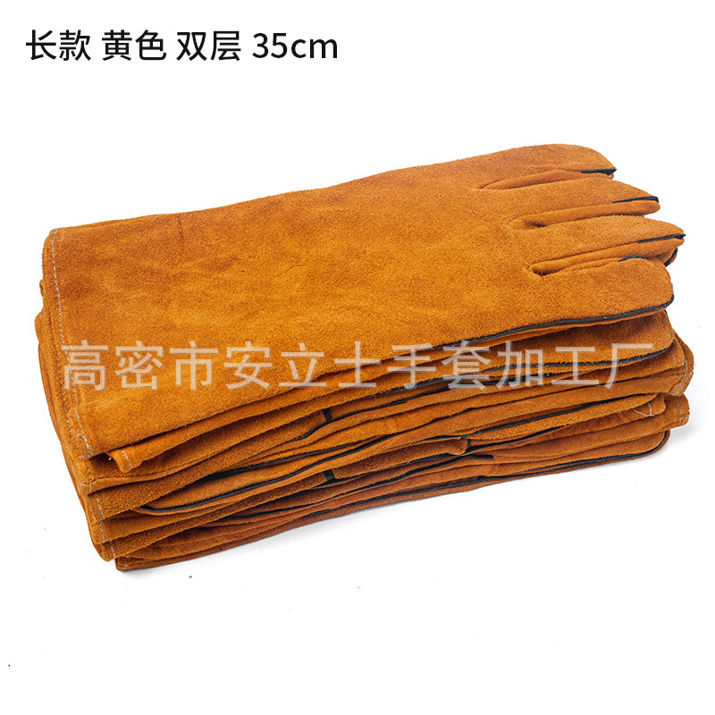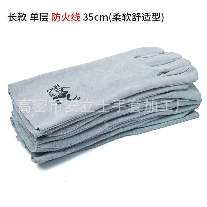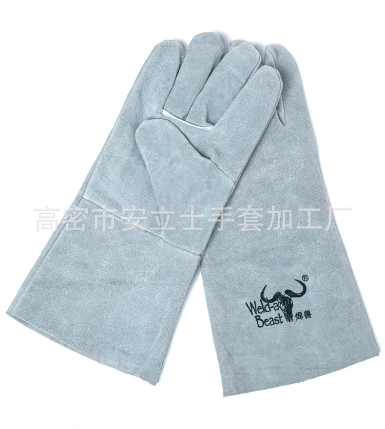 용접 야수 4150 Cowhide 용접기 장갑 용접 안티-scald 반대로 높은 온도 긴 두꺼운 사이트 처리 및 수리 노동 보호 손