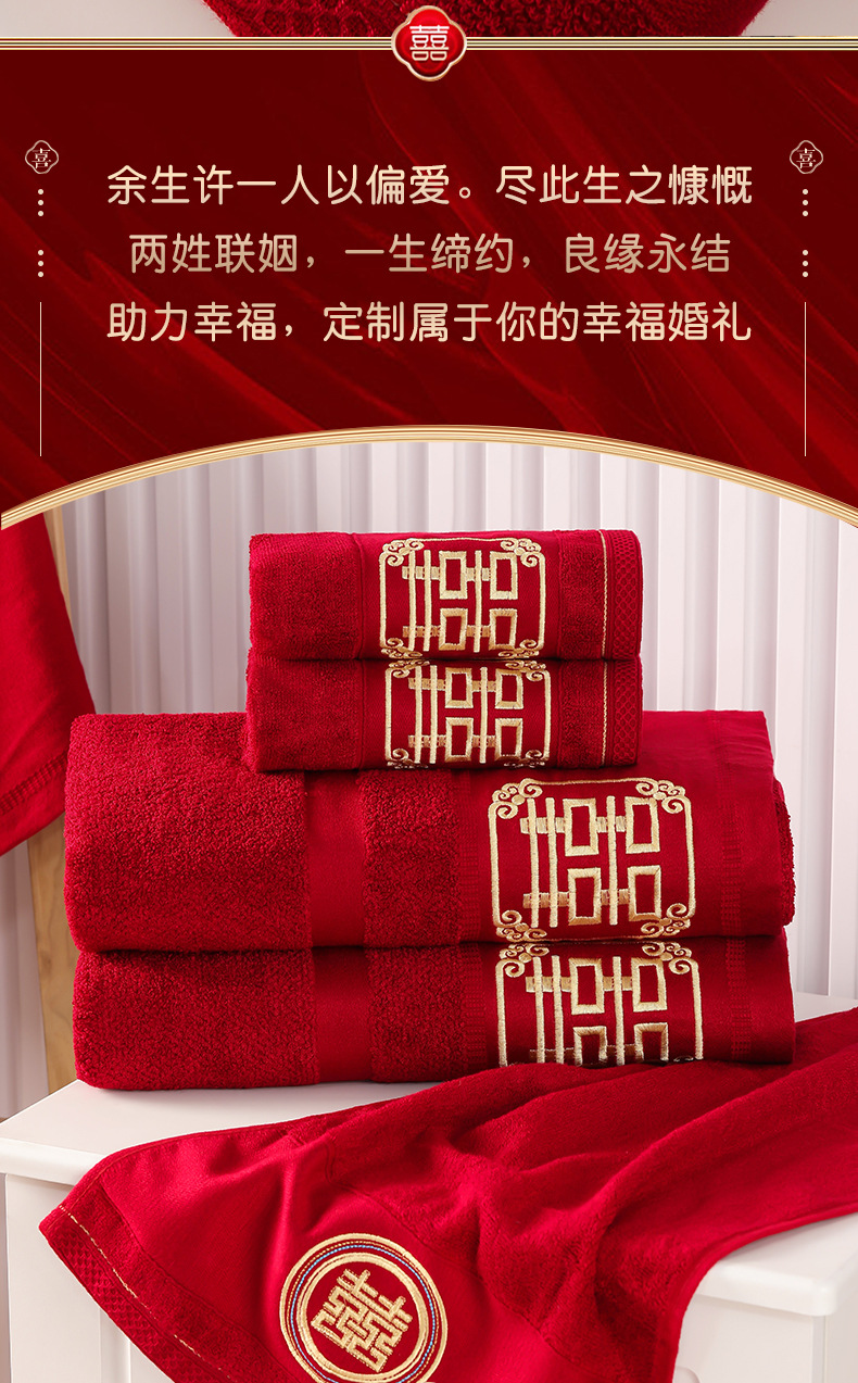 결혼식 수건 및 목욕 타월 세트, 새로운 가정용 순면 남녀용 축하용 빨간색 웨딩 용품스토어 가기