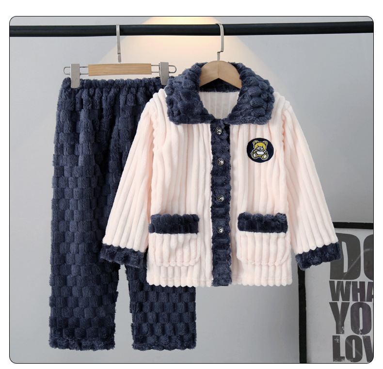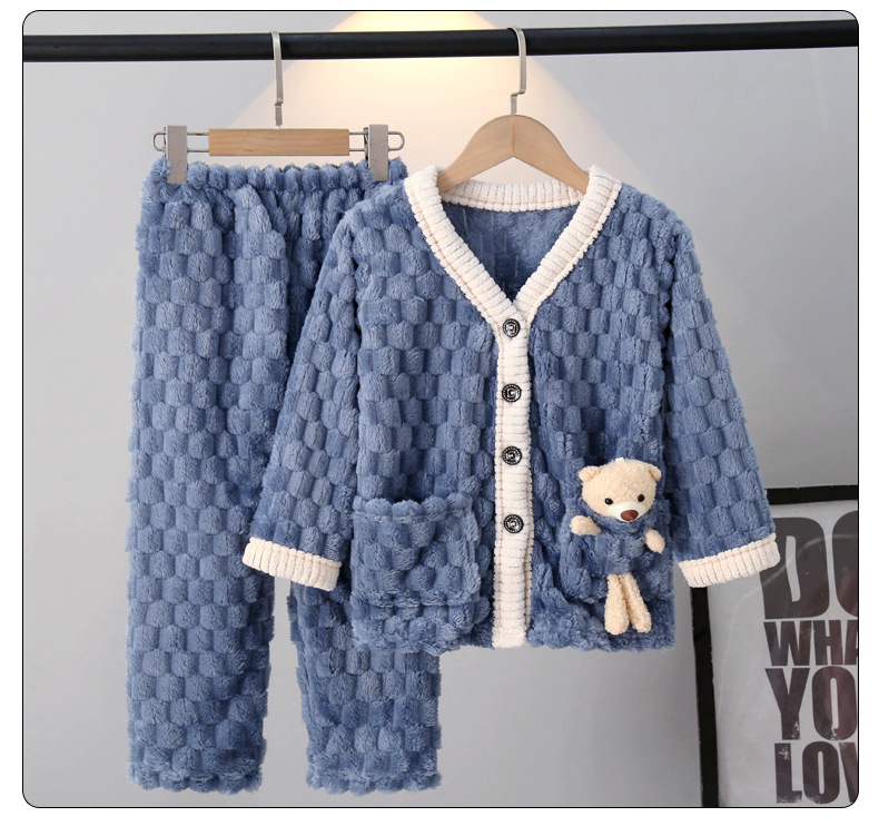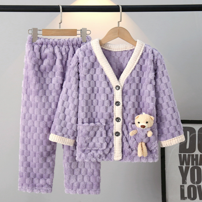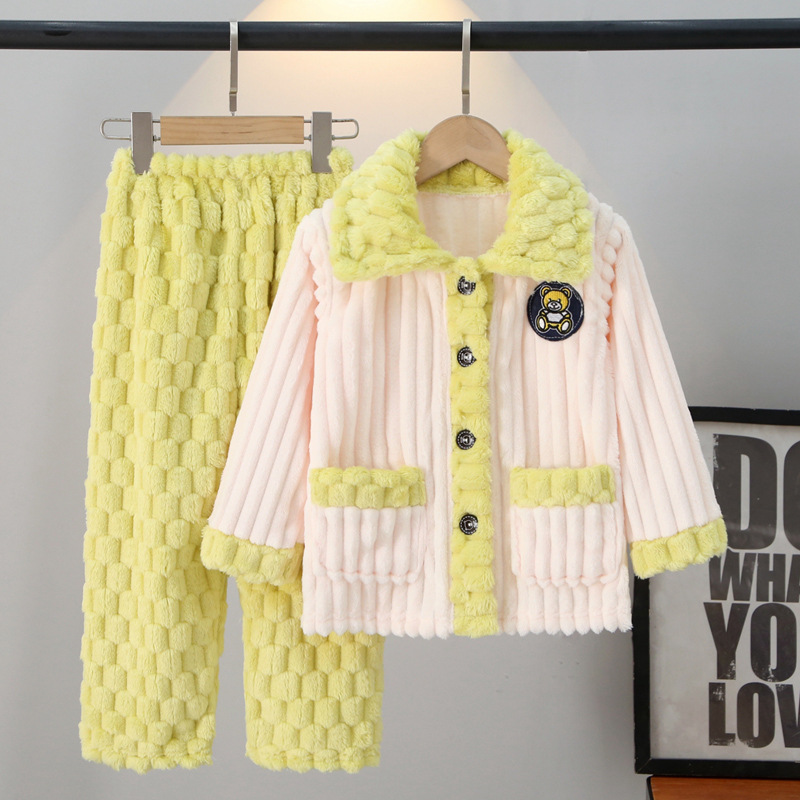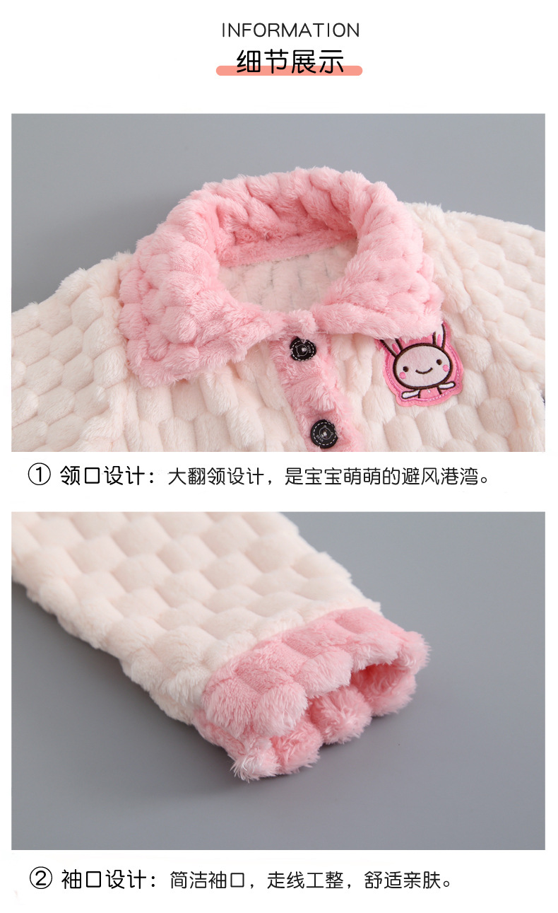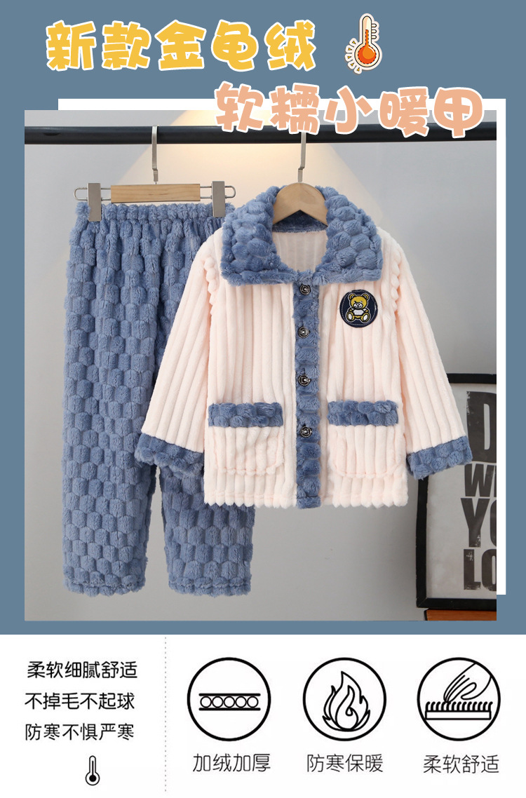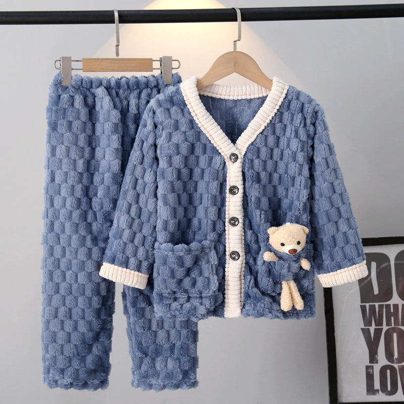 어린이 잠옷 가을과 겨울 플란넬 두꺼운 소년과 소녀 산호 양털 아기 카디건 단색 가정 옷 세트
