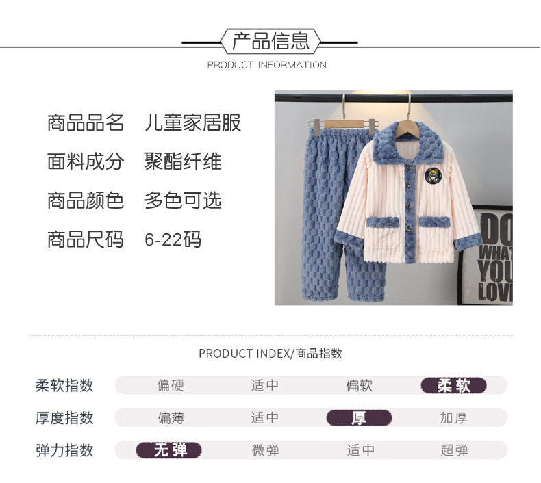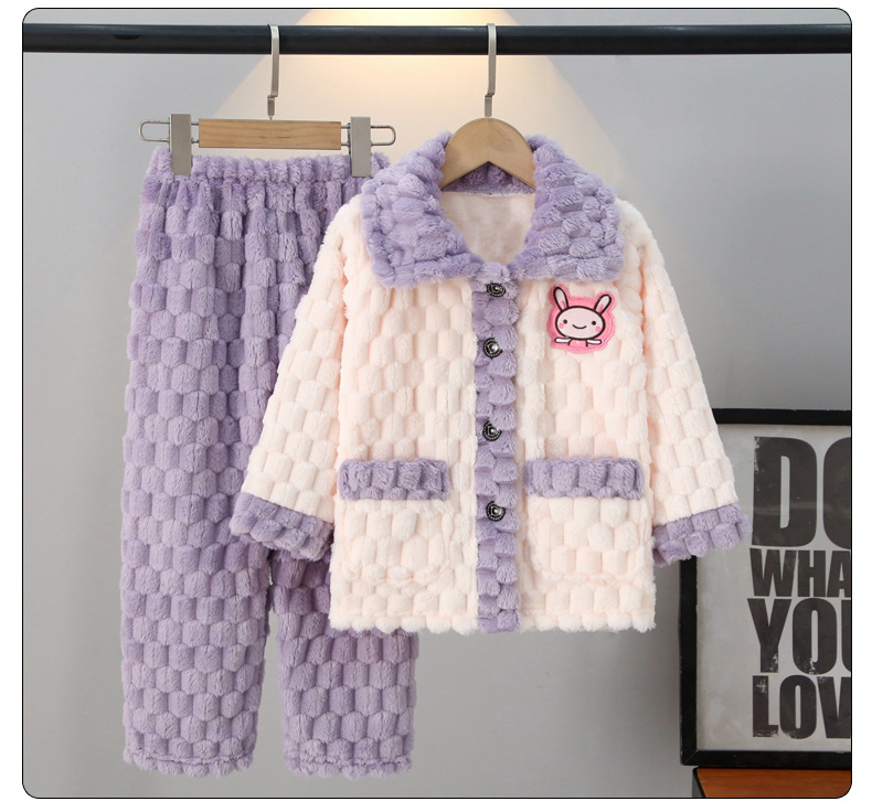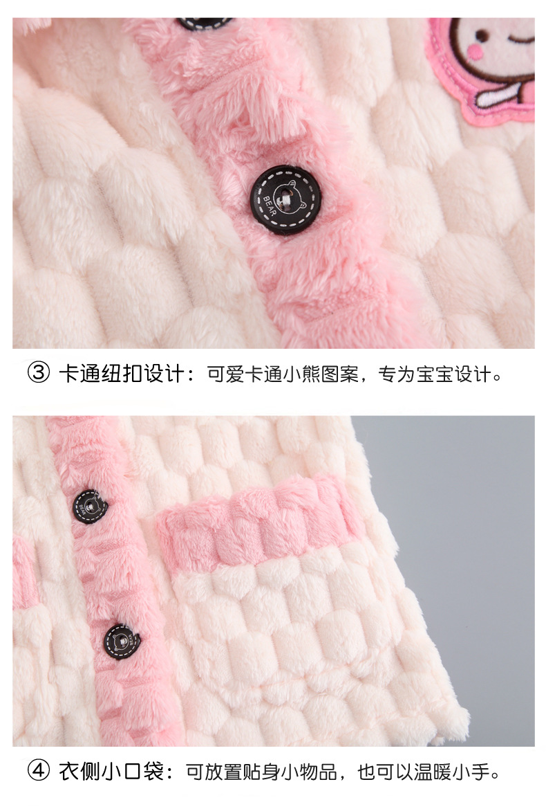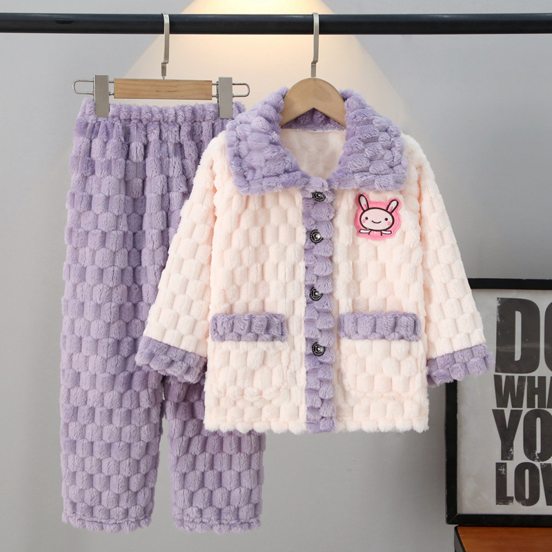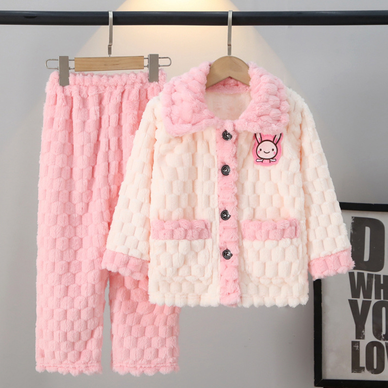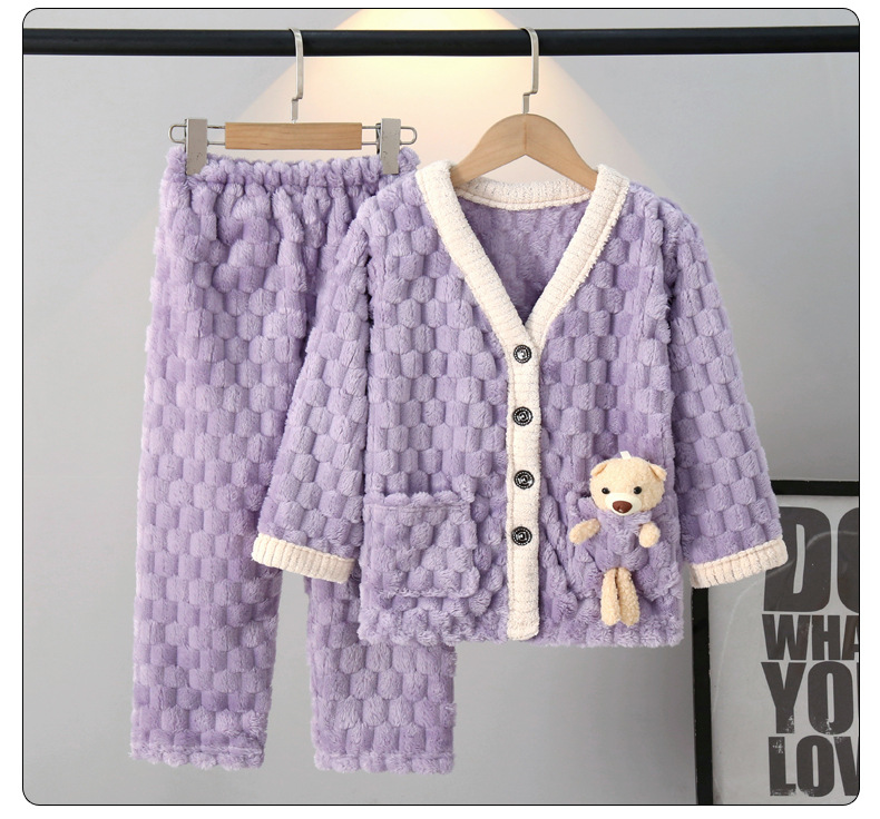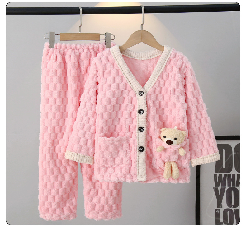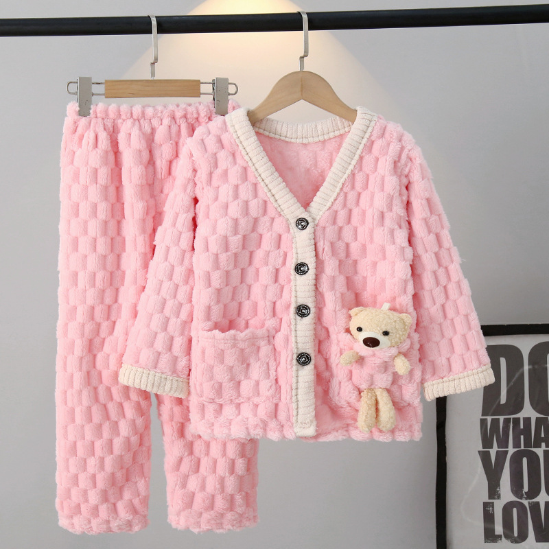 어린이 잠옷 가을과 겨울 플란넬 두꺼운 소년과 소녀 산호 양털 아기 카디건 단색 가정 옷 세트