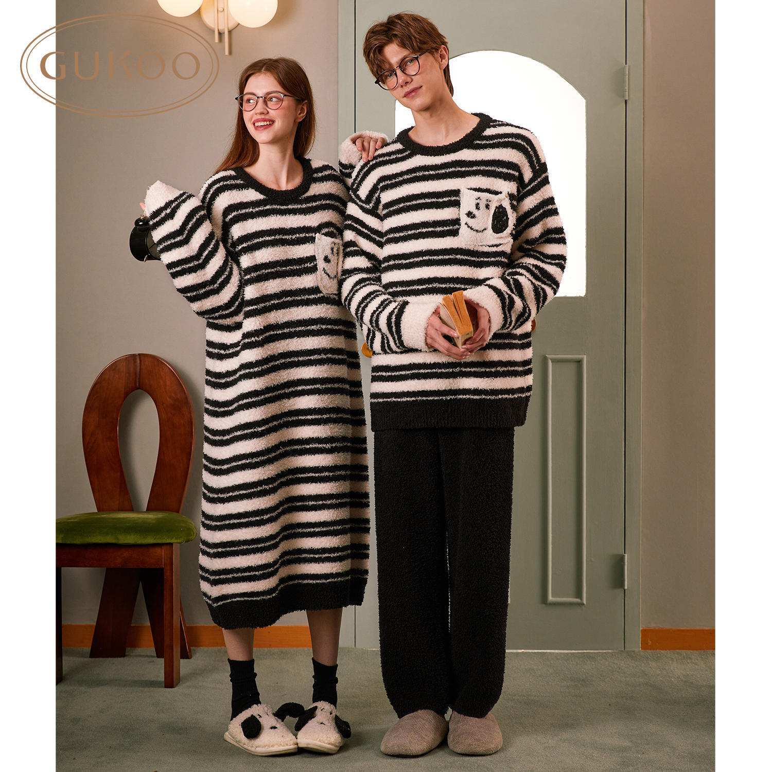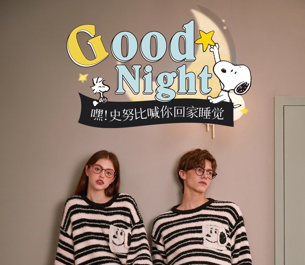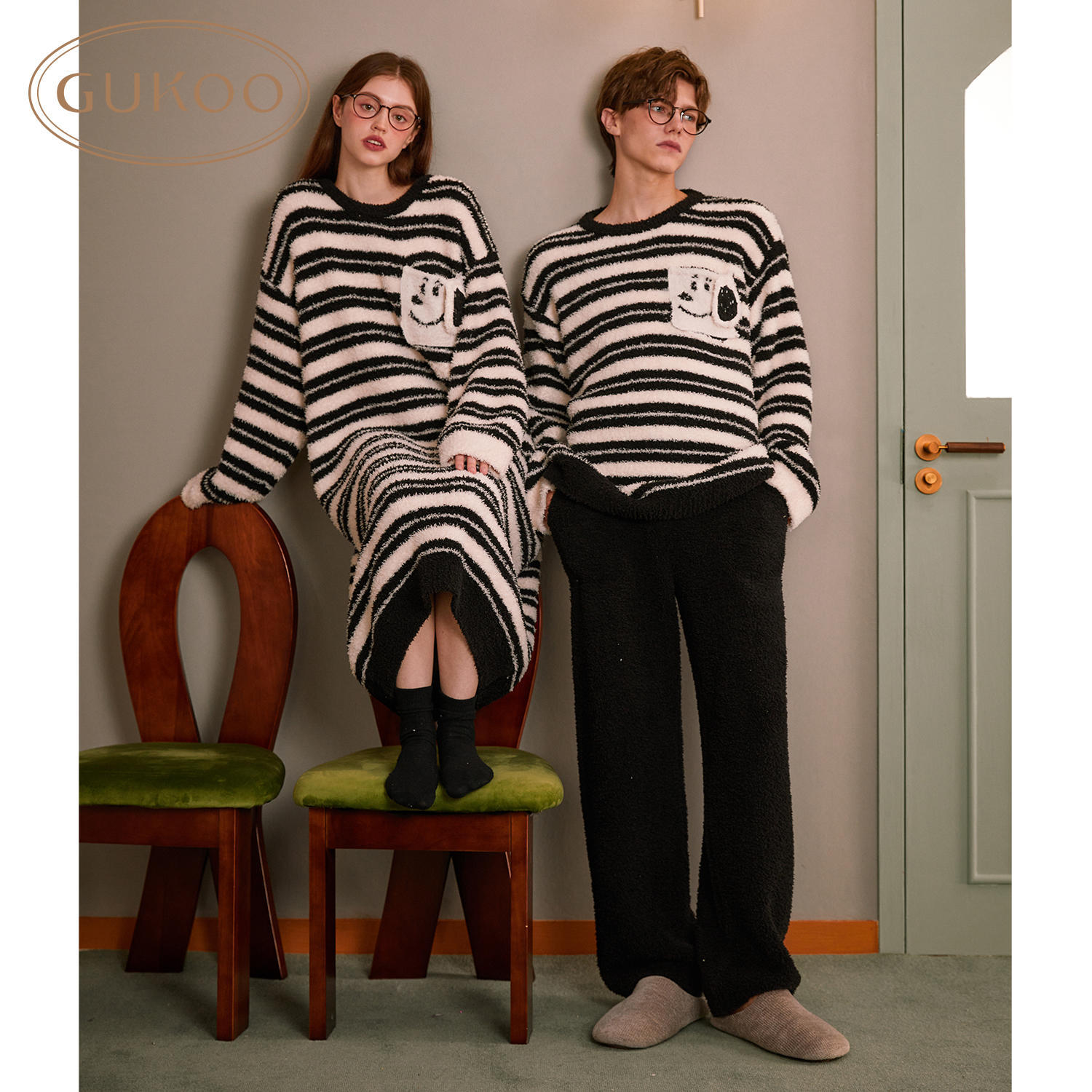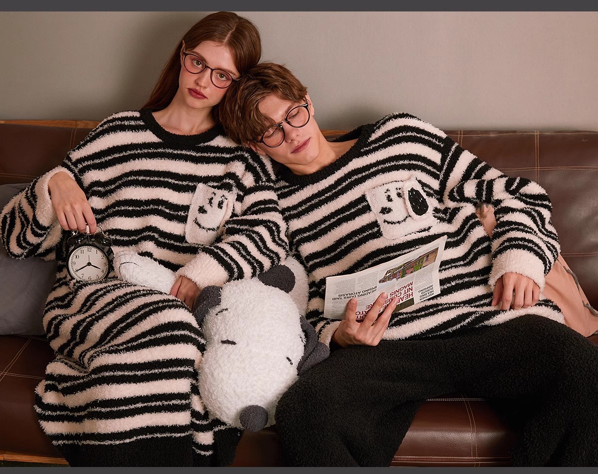 Cukoo/과일 껍질 잠옷 여성용 겨울 귀여운 만화 스누피 커플 잠옷 세트는 집 밖에서 입을 수 있습니다스토어 가기