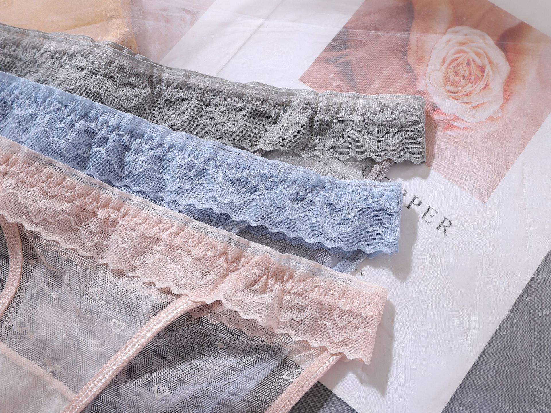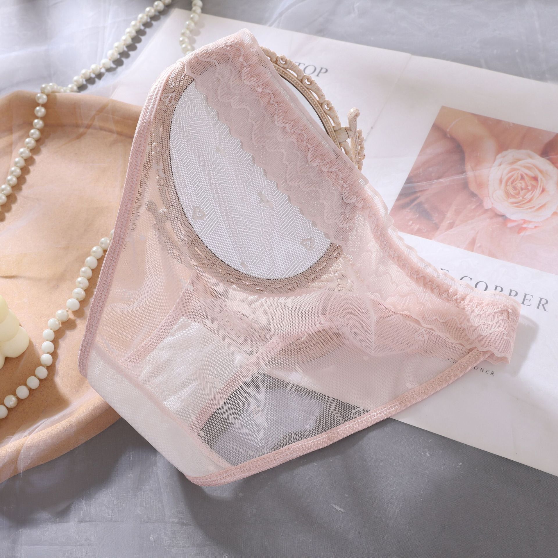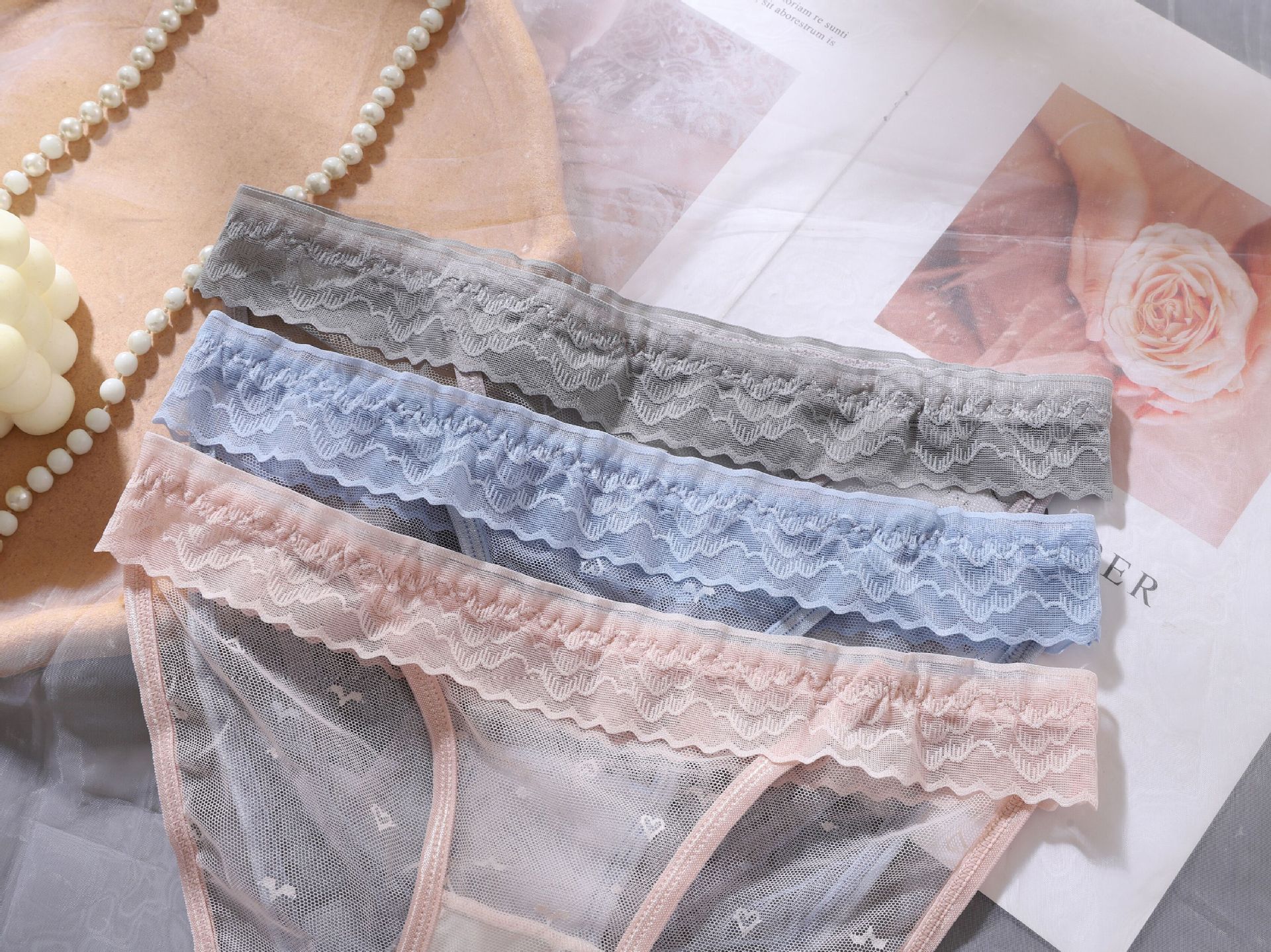 순수한 욕망 메쉬 섹시한 낮은 허리 레이스 중공 투명 뜨거운 유혹 여성 속옷 블랙 소녀의 삼각형 반바지스토어 가기