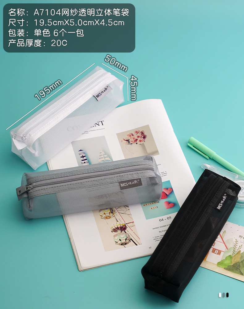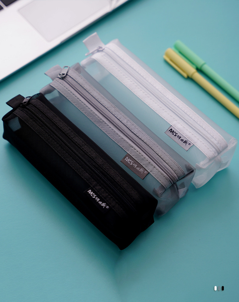 휴대용 필통, 입체 메쉬 필통, 투명하고 심플한 디자인, 3가지 색상 선택 가능, 학생 시험용 문구 가방, 수납함, 필통