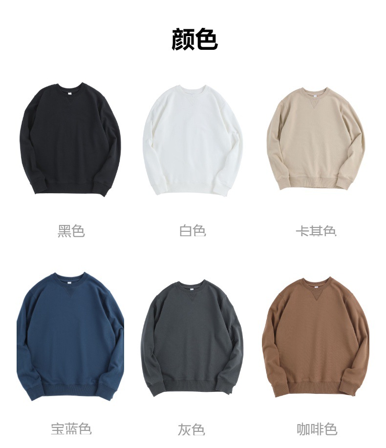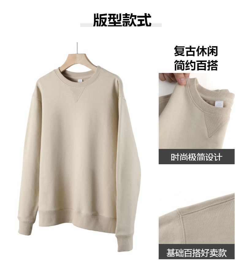 380g 패딩 무거운 빗질 코튼 크루 넥 스웨터 테리 루프 풀오버 긴 소매 역 삼각형 캐주얼 재킷 재고