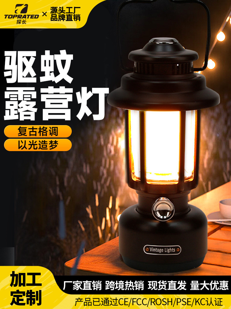 新型私模大容量多功能可悬挂便携帐篷礼品应急照明复古驱蚊露营灯
