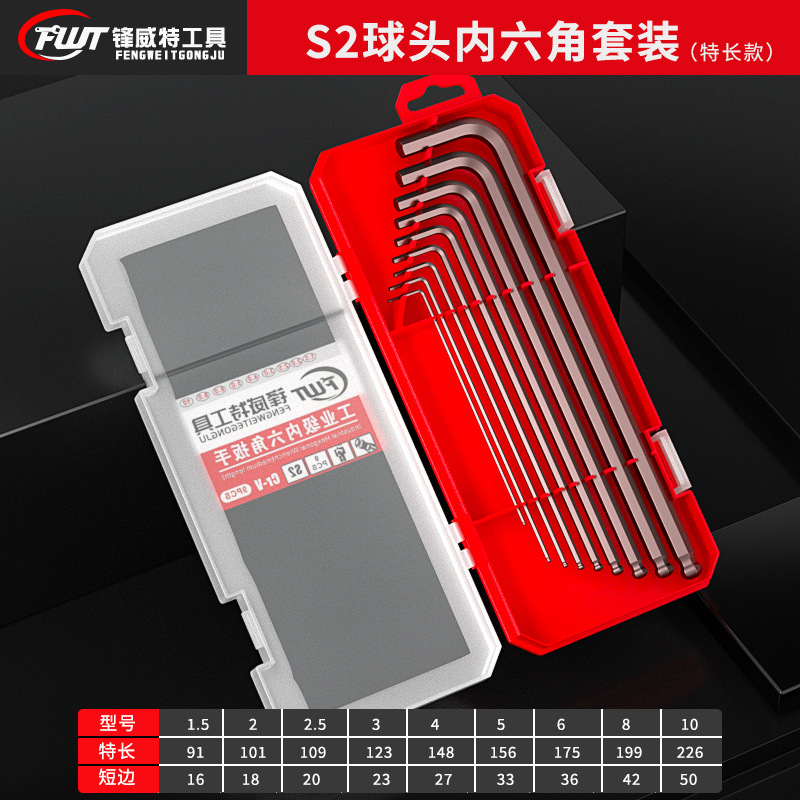 • S2 플랫/볼 헤드] 알렌 렌치 9 종 세트 (엑스트라 롱)