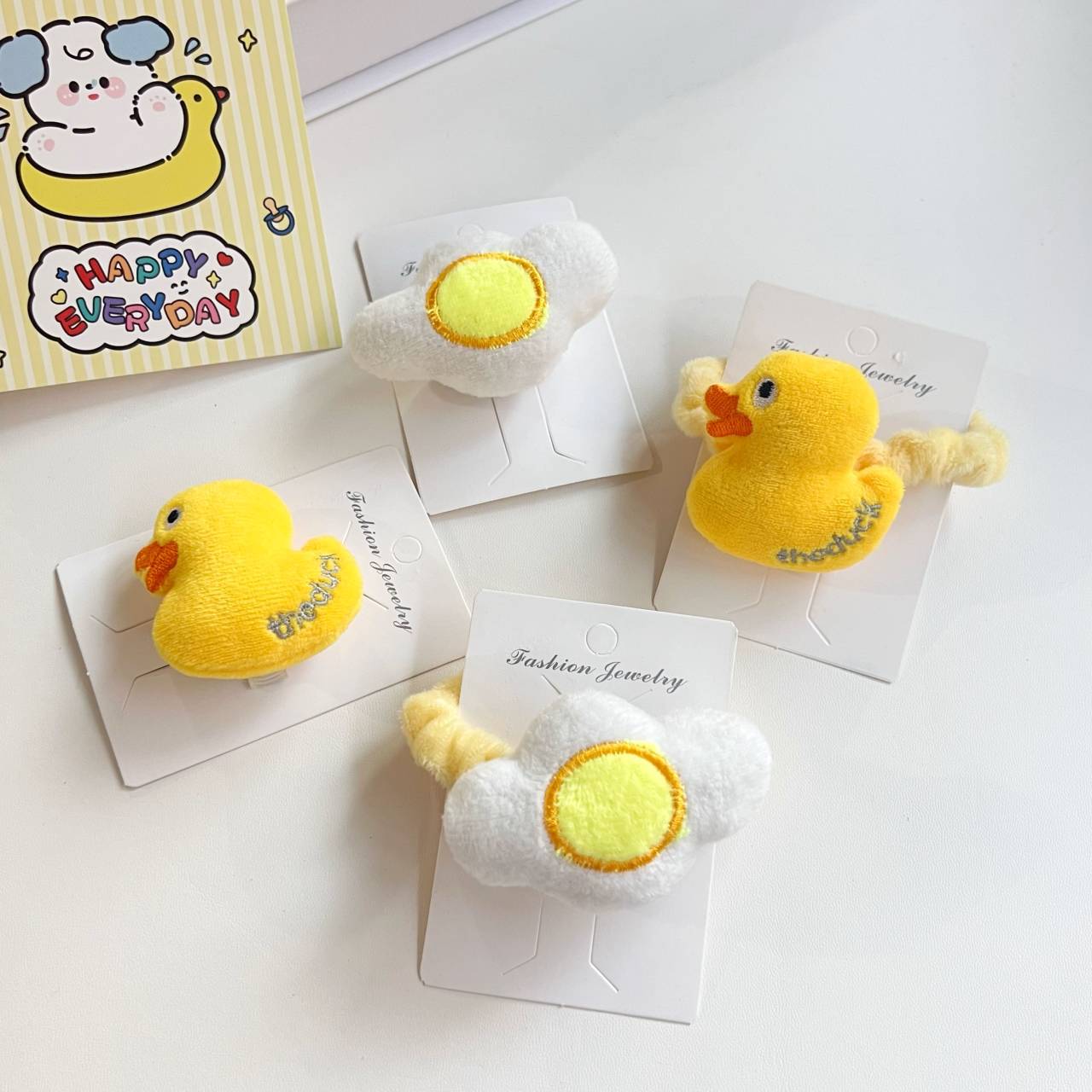 • 우유 노랑 꼬마 오리 머리핀 머리핀 [데친 달걀 머리핀]]