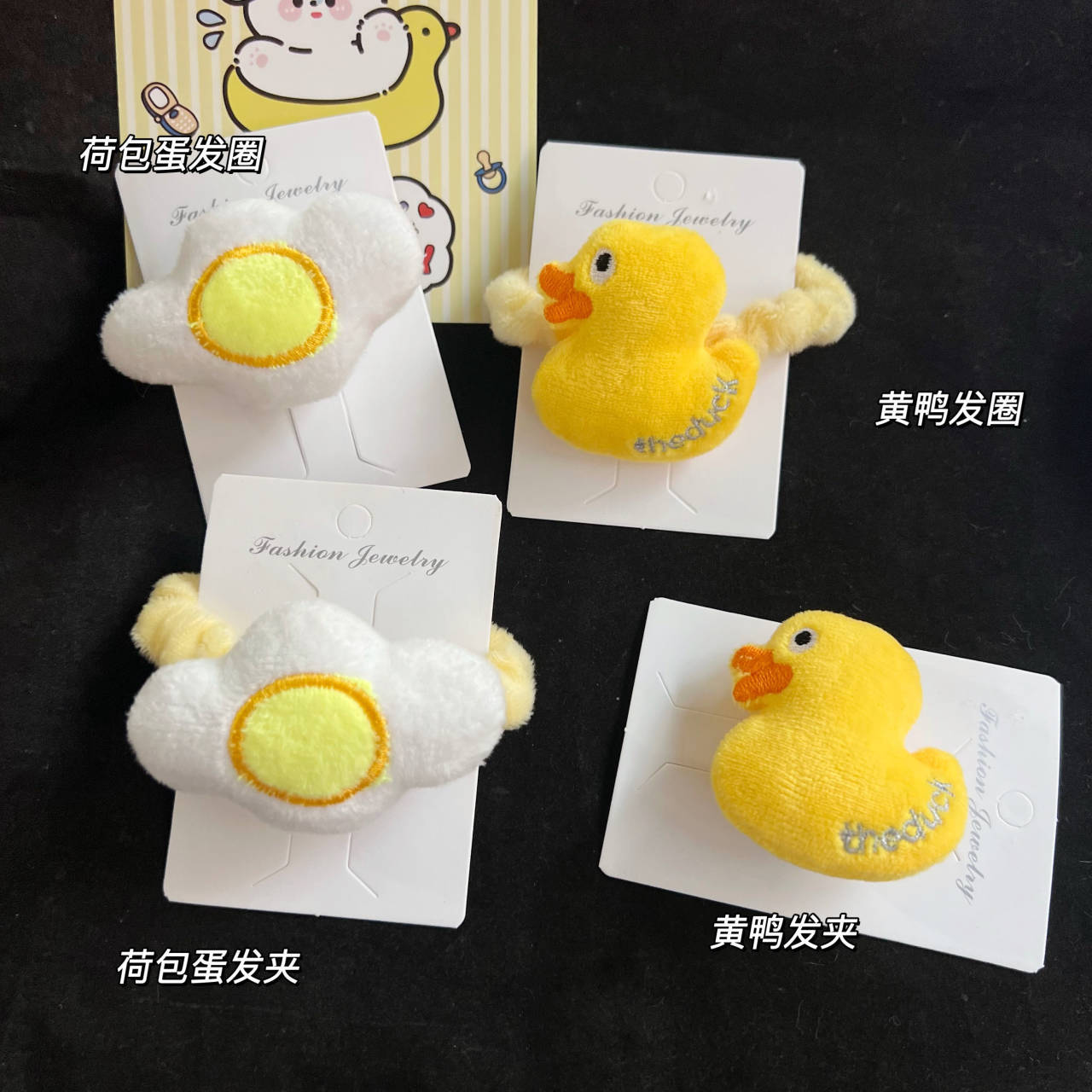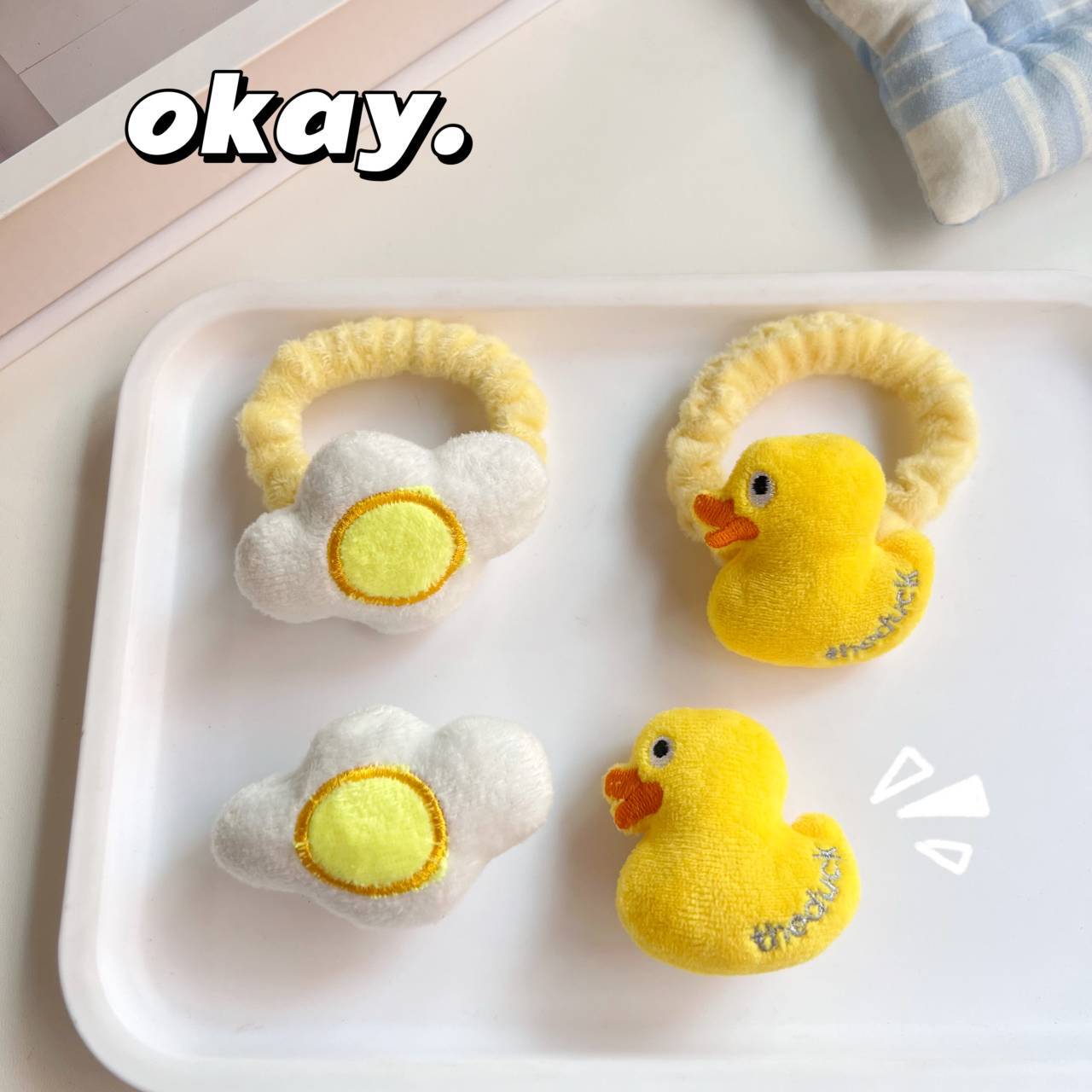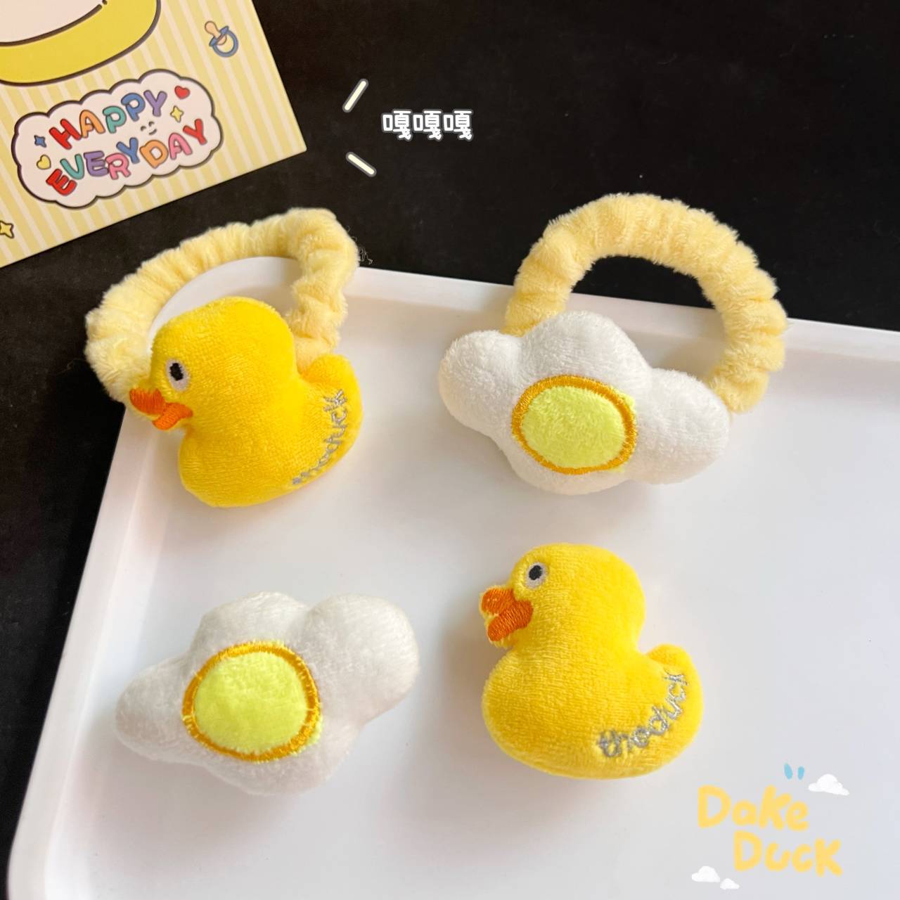 • 우유 노랑 꼬마 오리 머리핀 헤어밴드 [데친 계란 헤어밴드]]