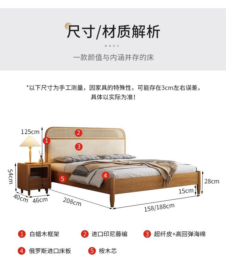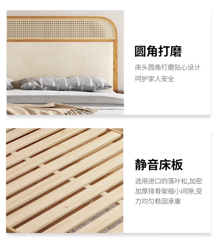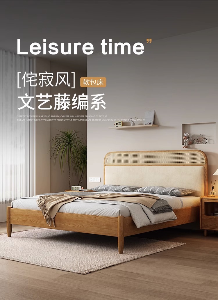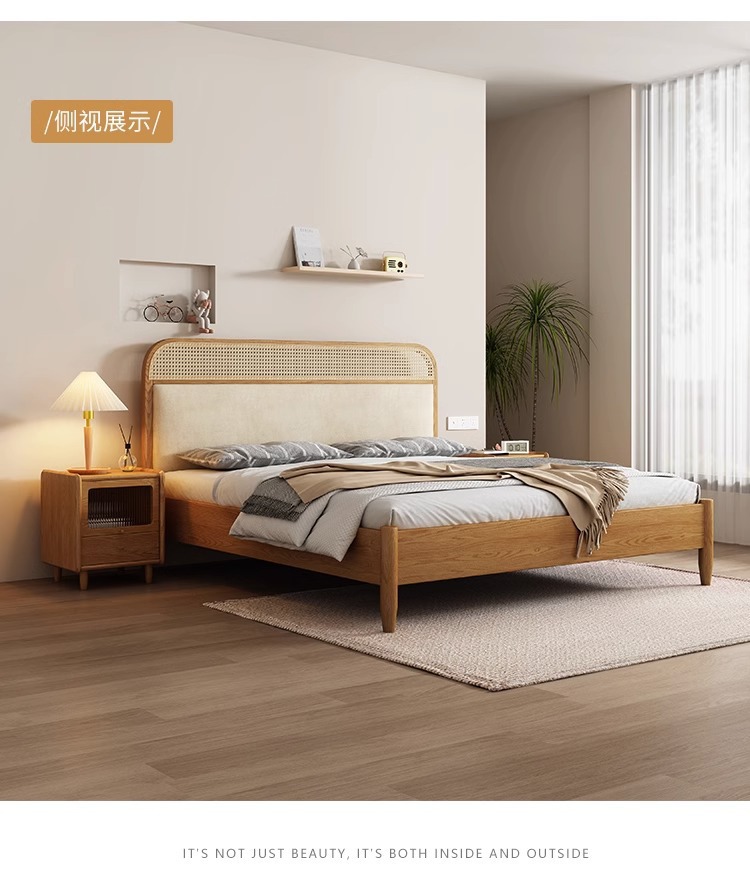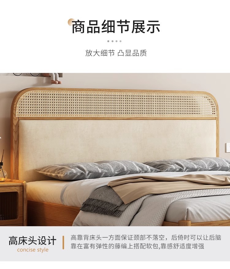 북유럽 등나무 짠 단단한 나무 침대 1.8 m 부드러운 가방 애쉬 우드 더블 침대 일본식 조용한 바람 작은 아파트 1.5 m 큰 침대스토어 가기