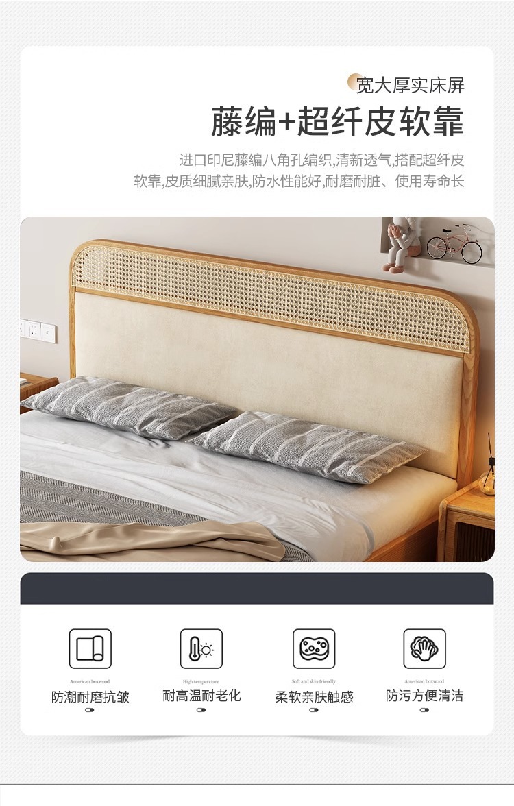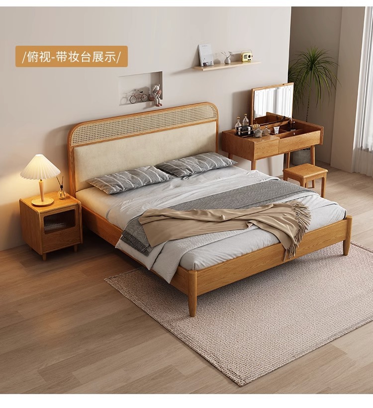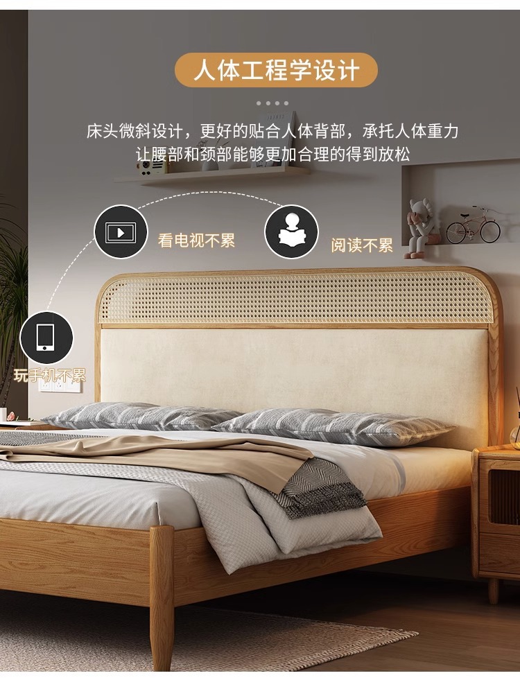 북유럽 등나무 짠 단단한 나무 침대 1.8 m 부드러운 가방 애쉬 우드 더블 침대 일본식 조용한 바람 작은 아파트 1.5 m 큰 침대