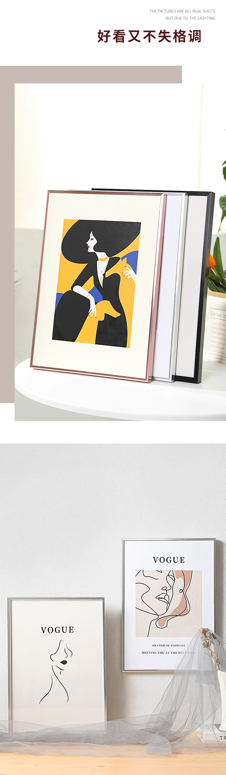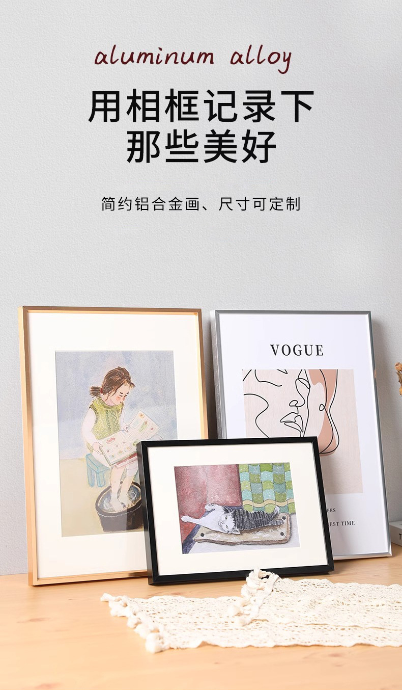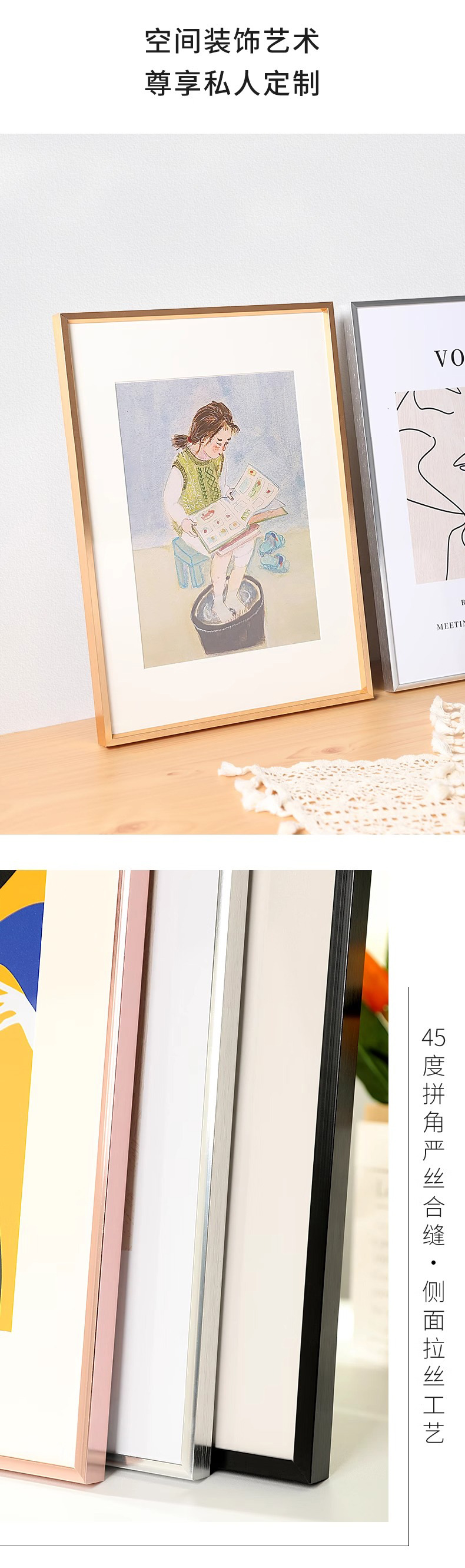 간단한 알루미늄 합금 사진 프레임 금속 와이어 드로잉 장식 그림 프레임 벽 교수형 테이블 엘리베이터 광고 포스터 프레임 맞춤형 도매스토어 가기