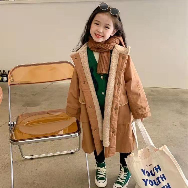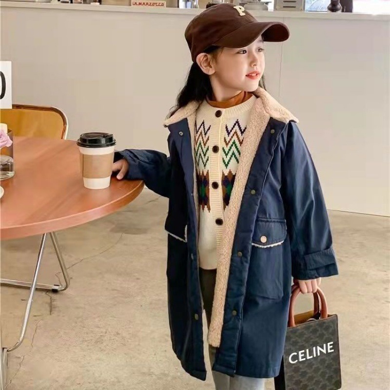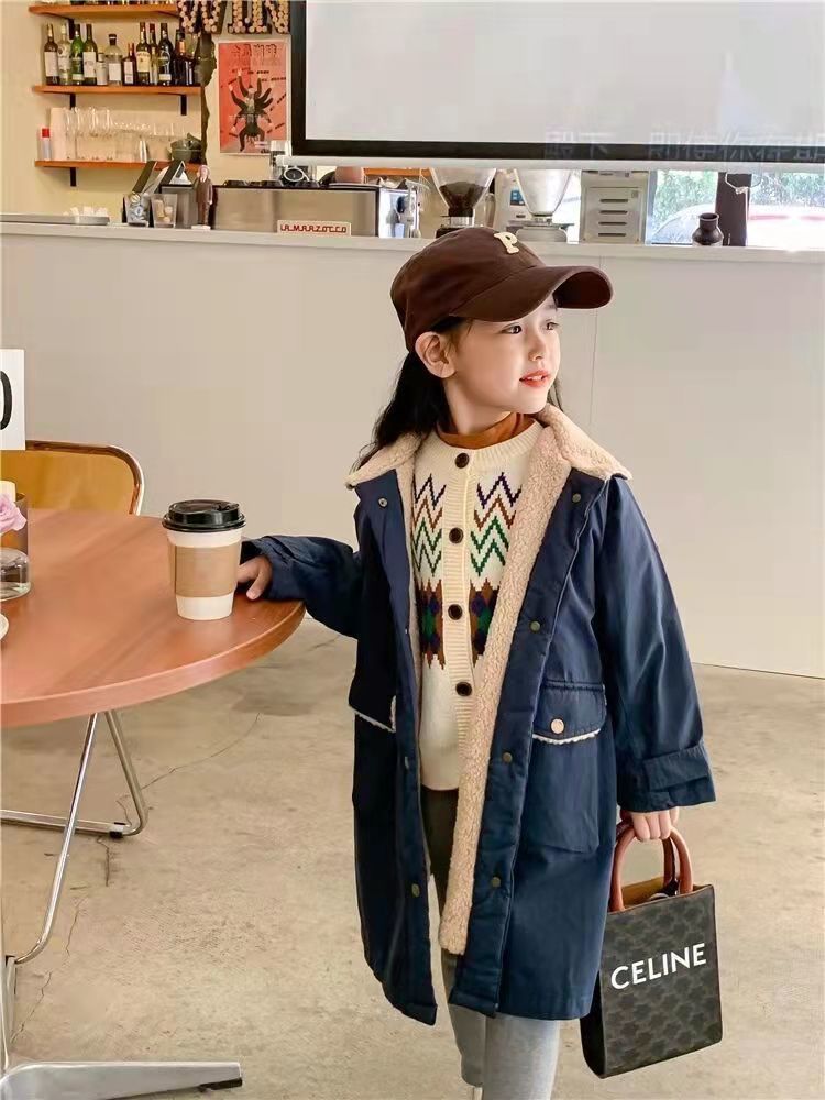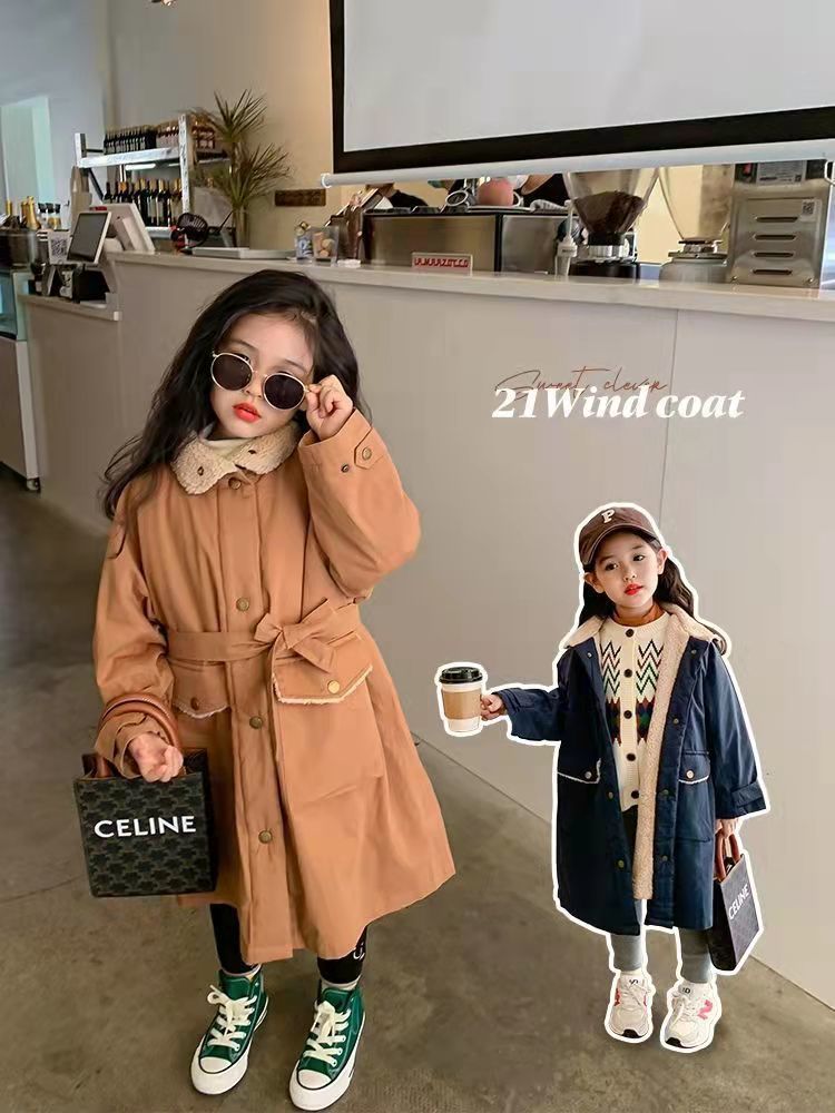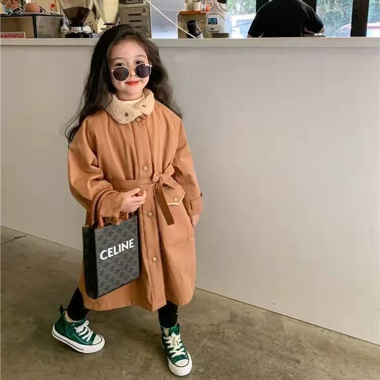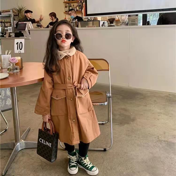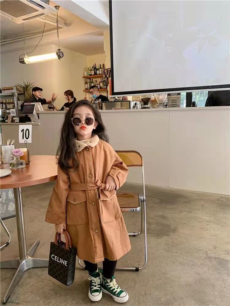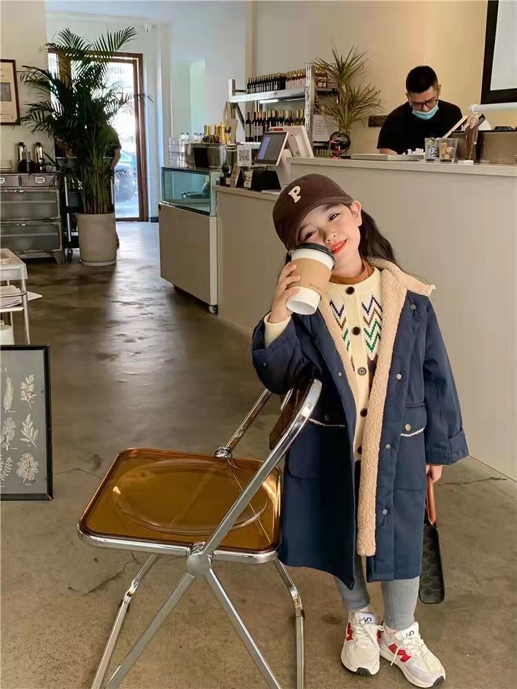 가을과 겨울 여성 아동복 면 패딩 코트 아기 서양 스타일 어린이 개인 유행 브랜드 두꺼운 홍콩 스타일 트렌치 코트스토어 가기