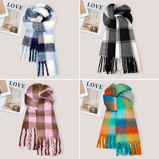 한국 스타일 분위기의 플러시 니트 스카프, 가을 겨울 여성용 고급스러운 숄, 여성용 외출용 목도리스토어 가기