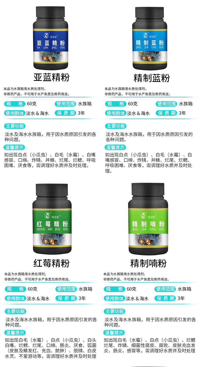 하 지 바오 블랙 병 60g 분말 수족관 옐로우 파우더 메틸 블루 물 정화 장식용 물고기스토어 가기