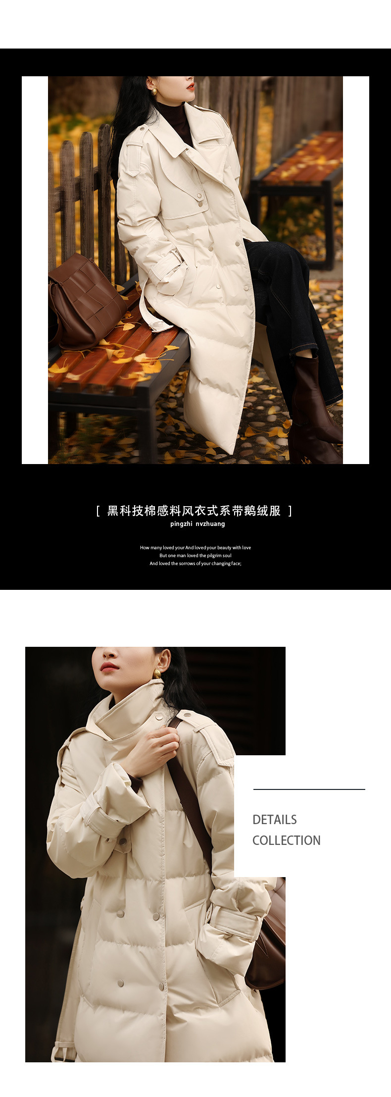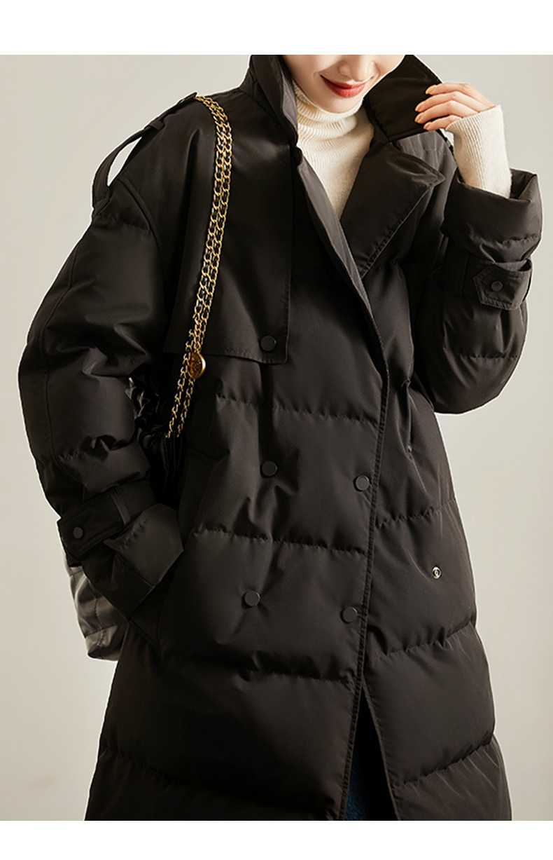 블랙 기술 윈드 코트 구스 다운 의류 하이 엔드 여성용 95 화이트 구스 다운 재킷 여성용 중간 길이 Pinghu 겨울 의류스토어 가기