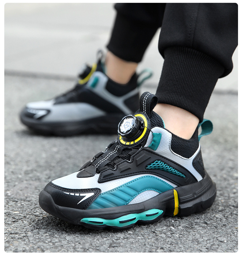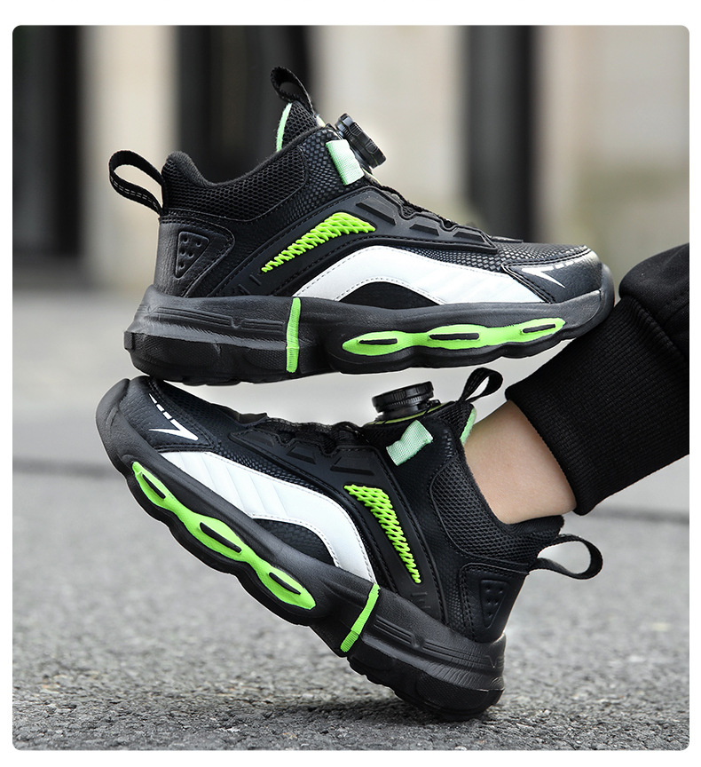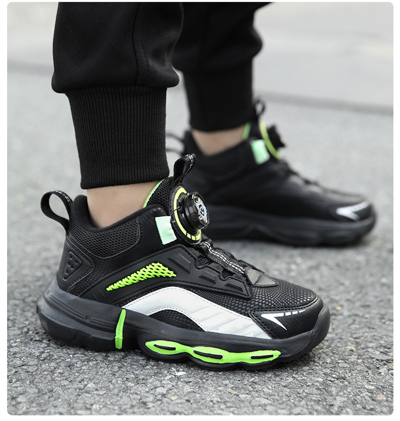 소년 신발 가을과 겨울 가죽 방수 회전 버클 중간 및 큰 어린이 농구 신발 소년 운동화 하이탑 어린이 운동화