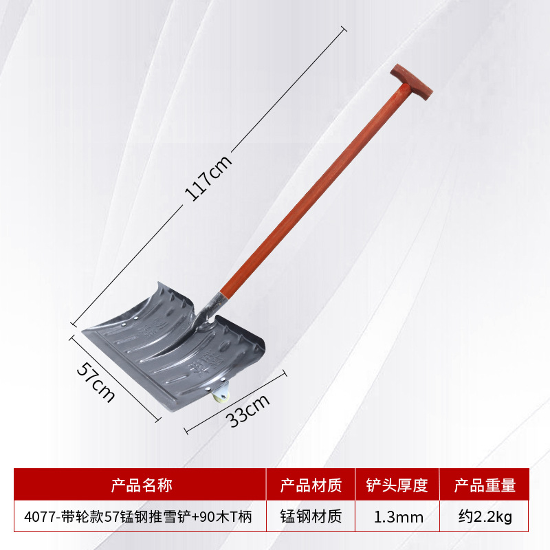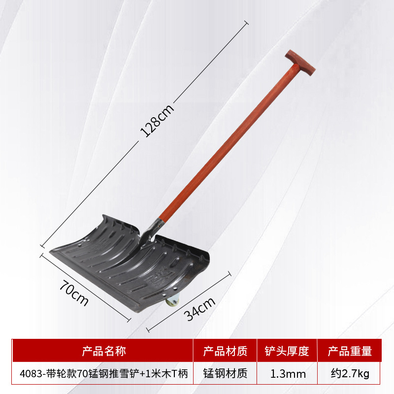 • 4083-바퀴 달린 70 망간강 눈삽 + 1m 원목 T 손잡이