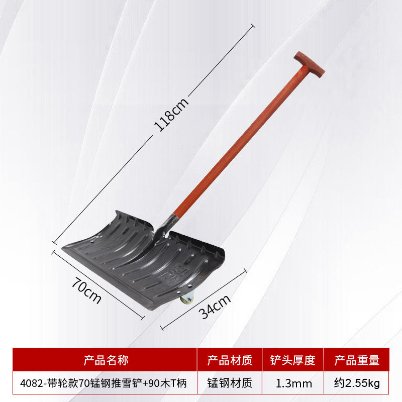 • 4082 - 바퀴 달린 70 망간강 제설 삽 - 90 목재 원목 T자 손잡이 추가