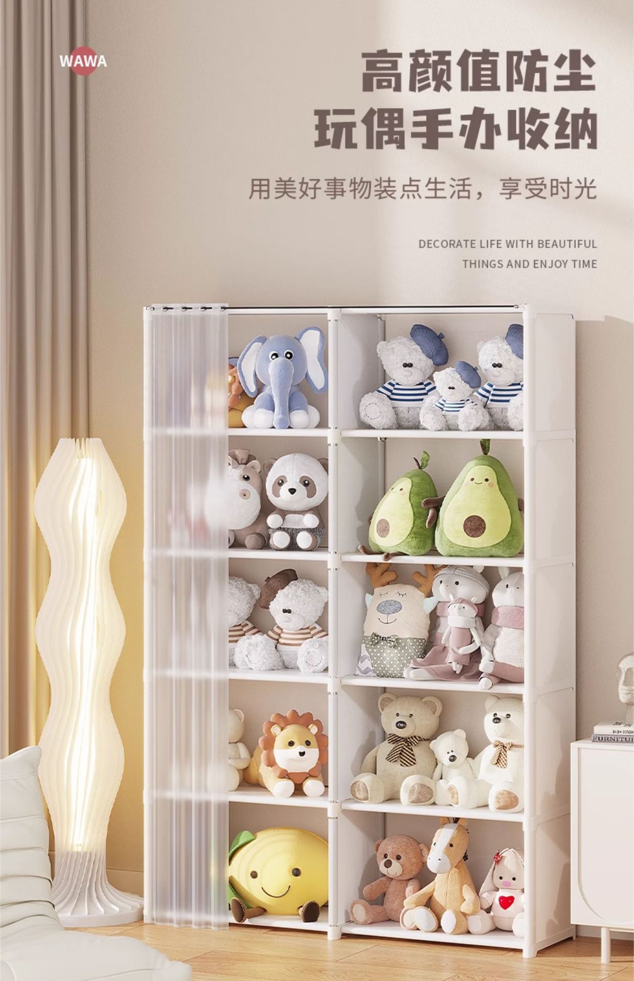 인형 보관 배럴 간단한 보관 랙 가정용 인형 보관 바구니 다층 방진 침실 어린이 장난감 보관 랙