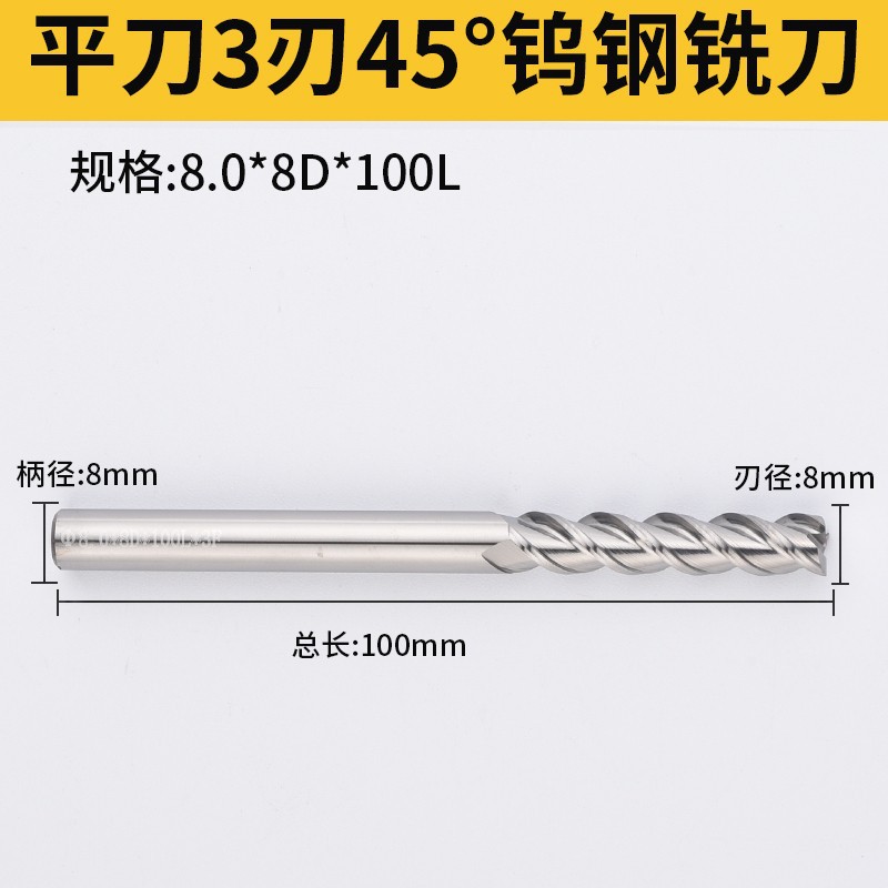 하드 엔드 밀 45 도 텅스텐 스틸 밀링 커터 3 날 알루미늄 합금 머시닝 센터 텅스텐 스틸 커터 플랫 커터 몰드 커터