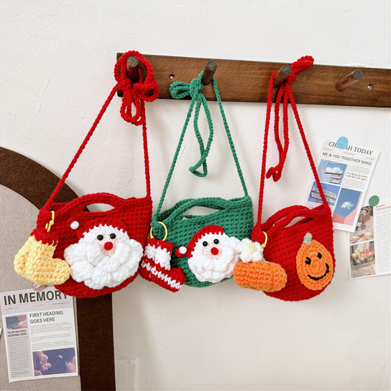 어린이 가방 가을과 겨울 새로운 만화 귀여운 양모 짠 가방 유럽과 미국 산타 클로스 수제 니트 가방 크로스 바디 백스토어 가기