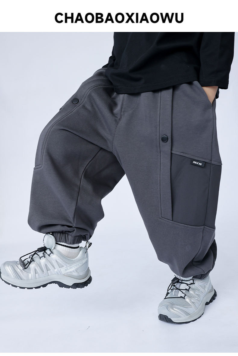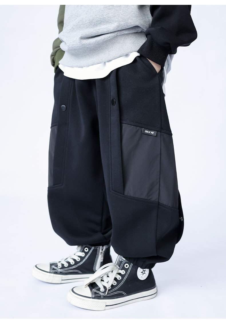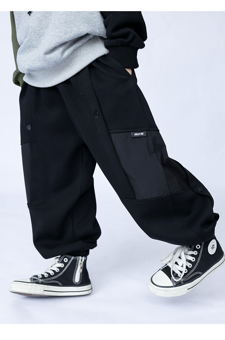 남아 기모 캐주얼 바지 2023 가을/겨울 새로운 한국 어린이 스포츠 바지 느슨한 어린이 스티치 트렌디 바지
