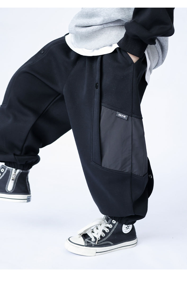 남아 기모 캐주얼 바지 2023 가을/겨울 새로운 한국 어린이 스포츠 바지 느슨한 어린이 스티치 트렌디 바지스토어 가기