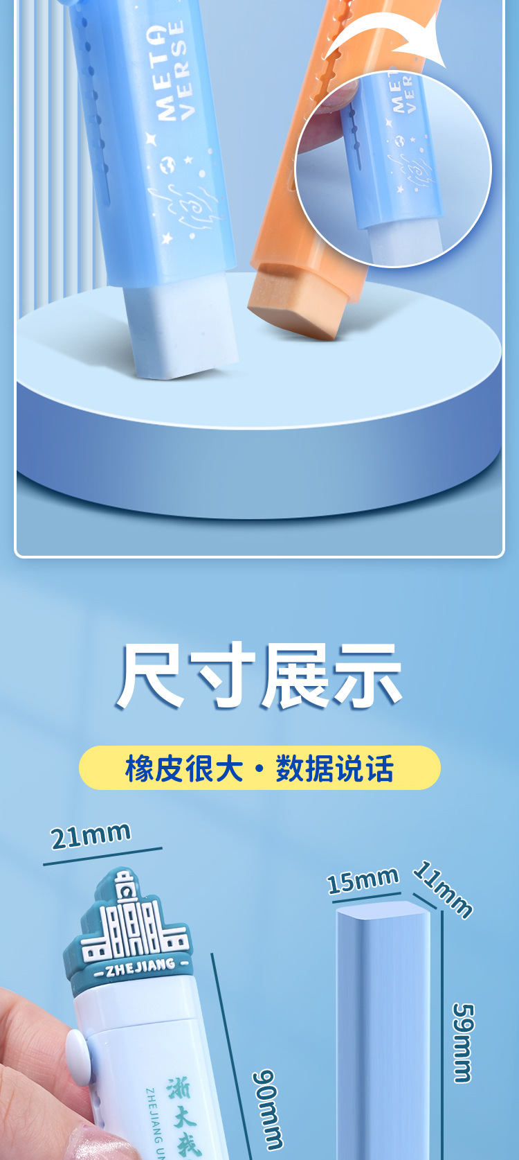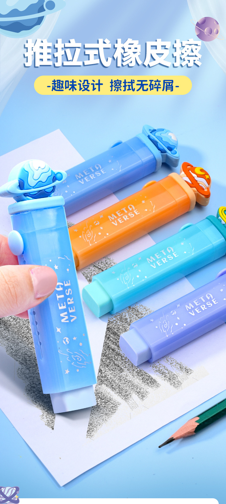 만화 푸시-자국을 남기지 않고 지우개 청소 높은 색상 값 개폐식 연필 지우개 학생 문구 지우개